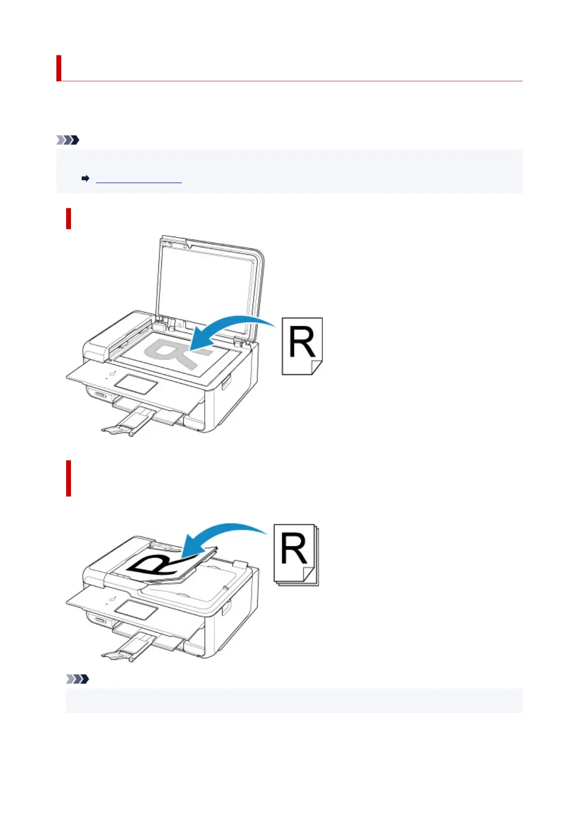 The printer has two positions to load originals: platen and ADF (Auto Document Feeder).