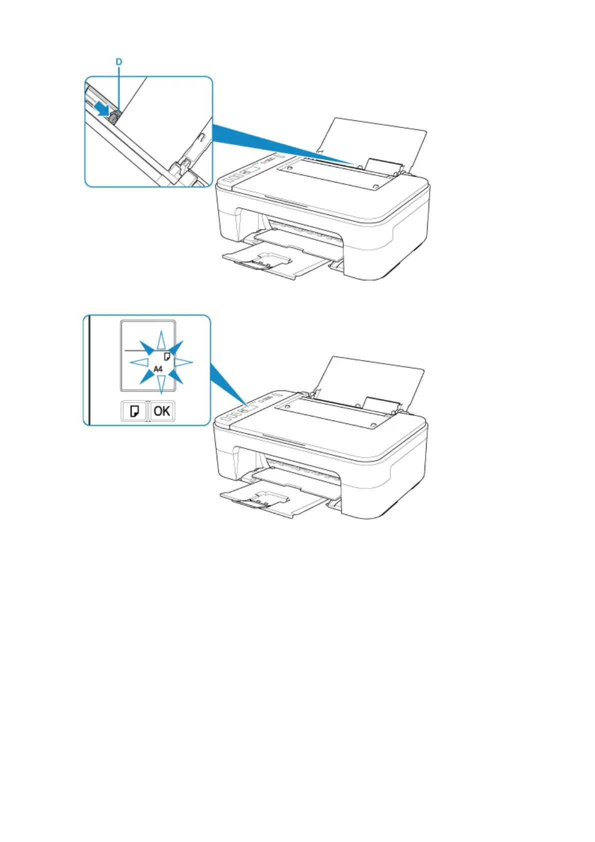 Press Paper Select button (E) to select a paper size according to the paper loaded on the