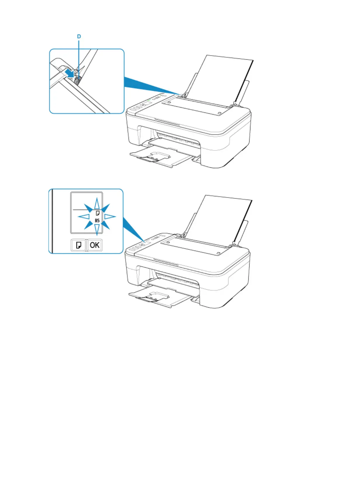 Press Paper Select button (E) to select a paper size according to the paper loaded on the