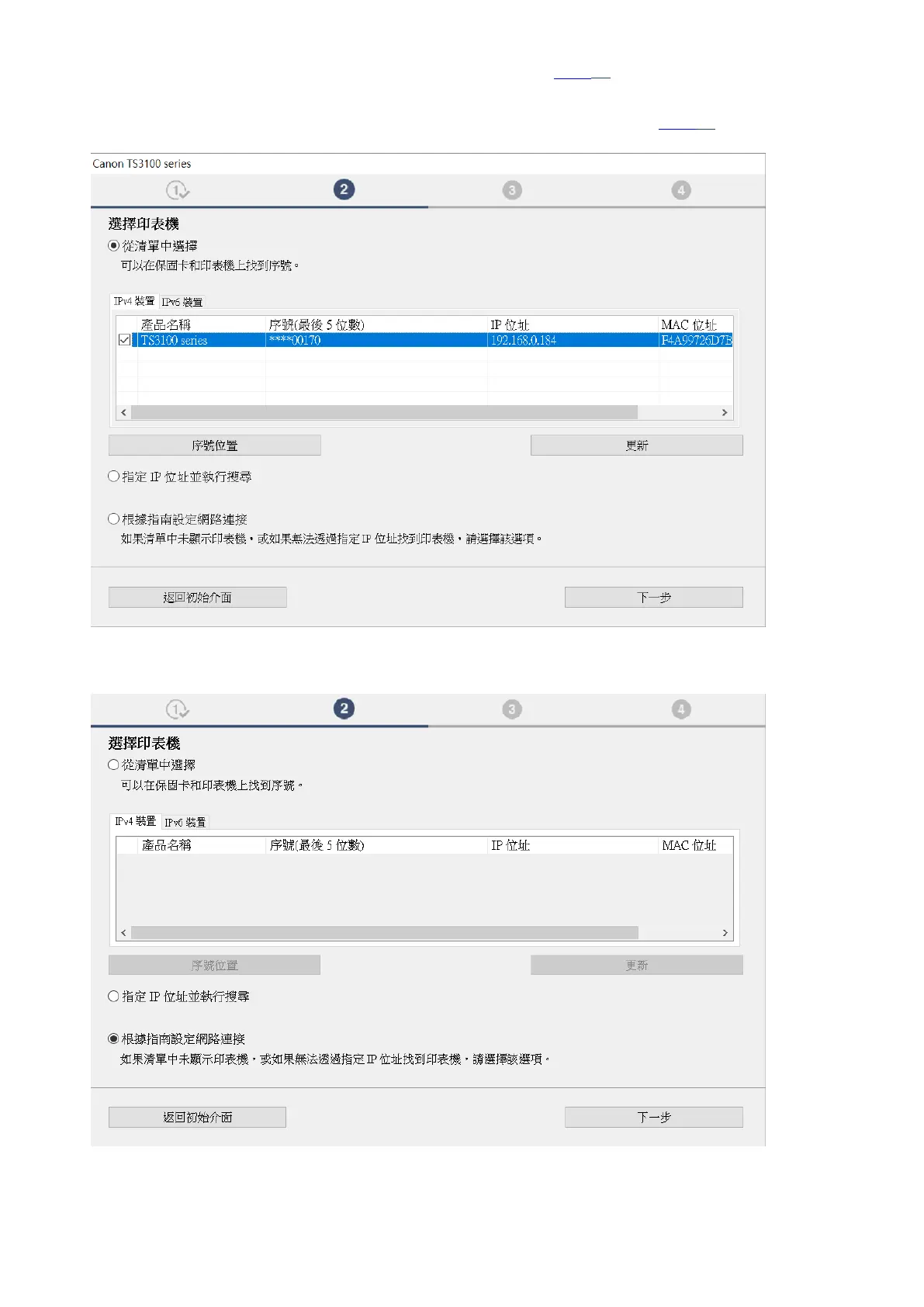 9. 如清單上有印表機,剔選印表機後按“下⼀步”,然後跳至步驟18。如清單上沒有印表機,則繼