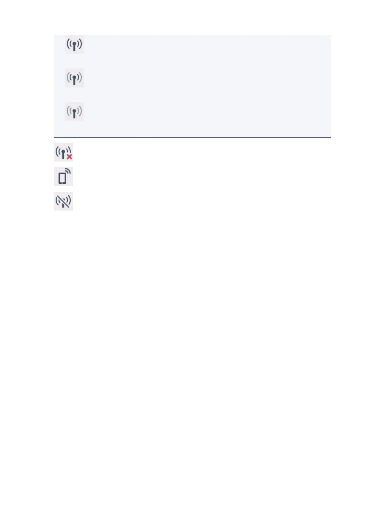 (Signal strength: 50 % or less): The problem such as the printer cannot print may occur.