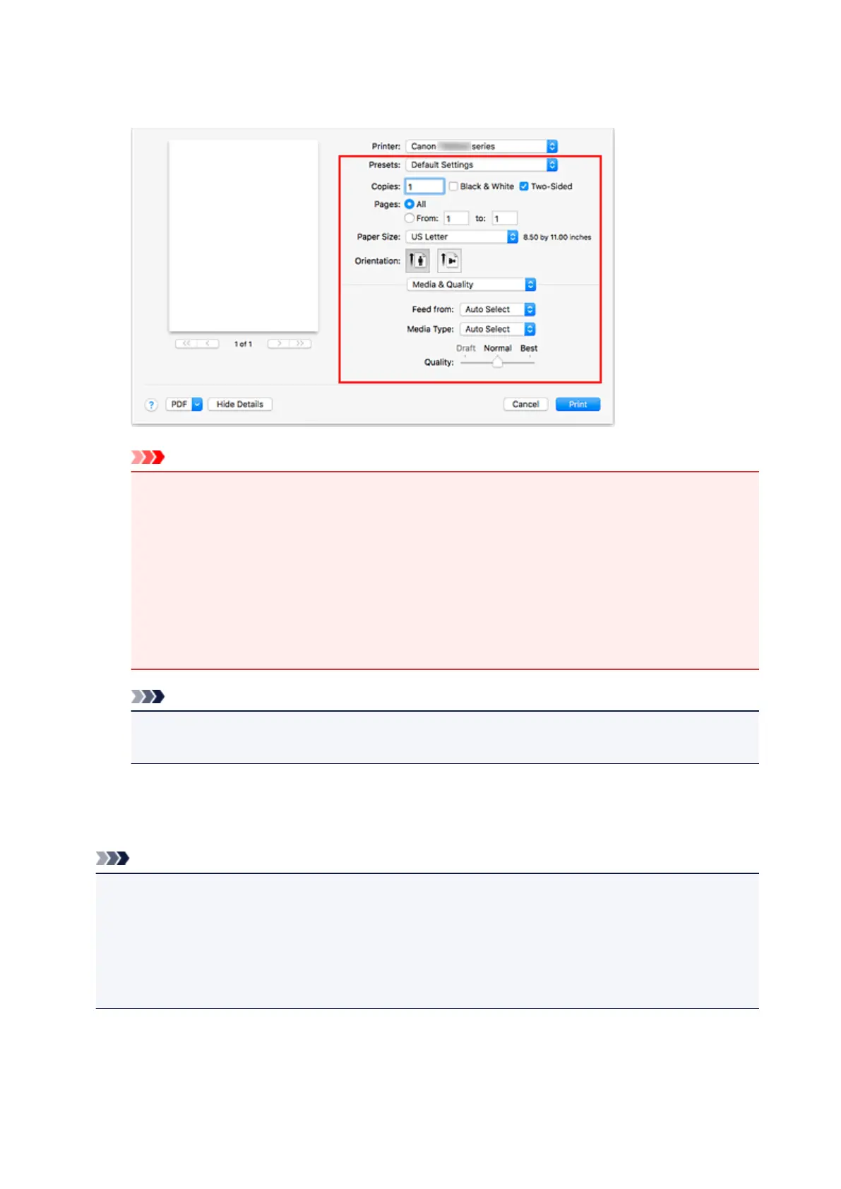 • If printing paper such as photo paper that cannot be printed on both sides, uncheck the Two-