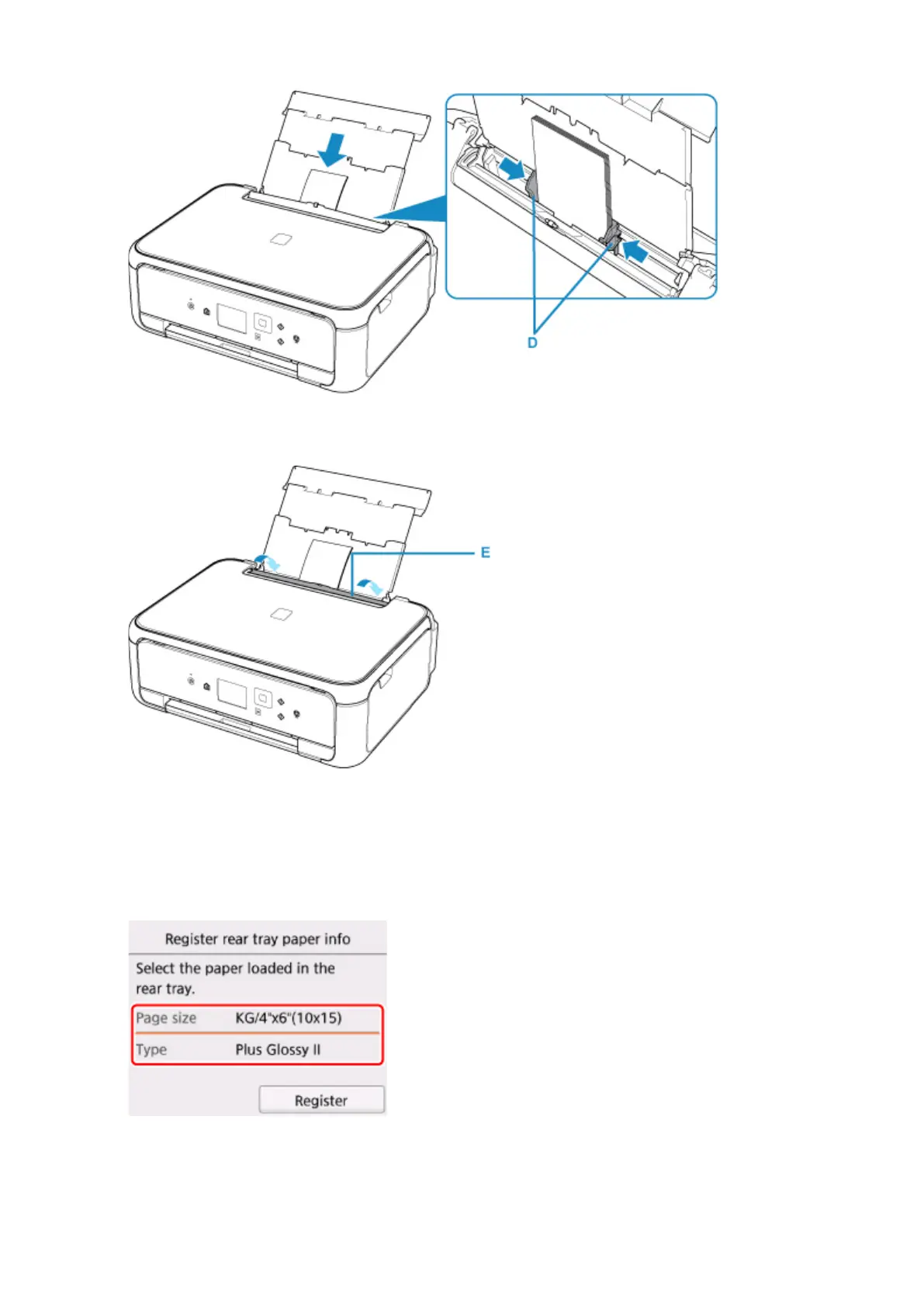 After closing the feed slot cover, the paper information registration screen for the rear tray is displayed