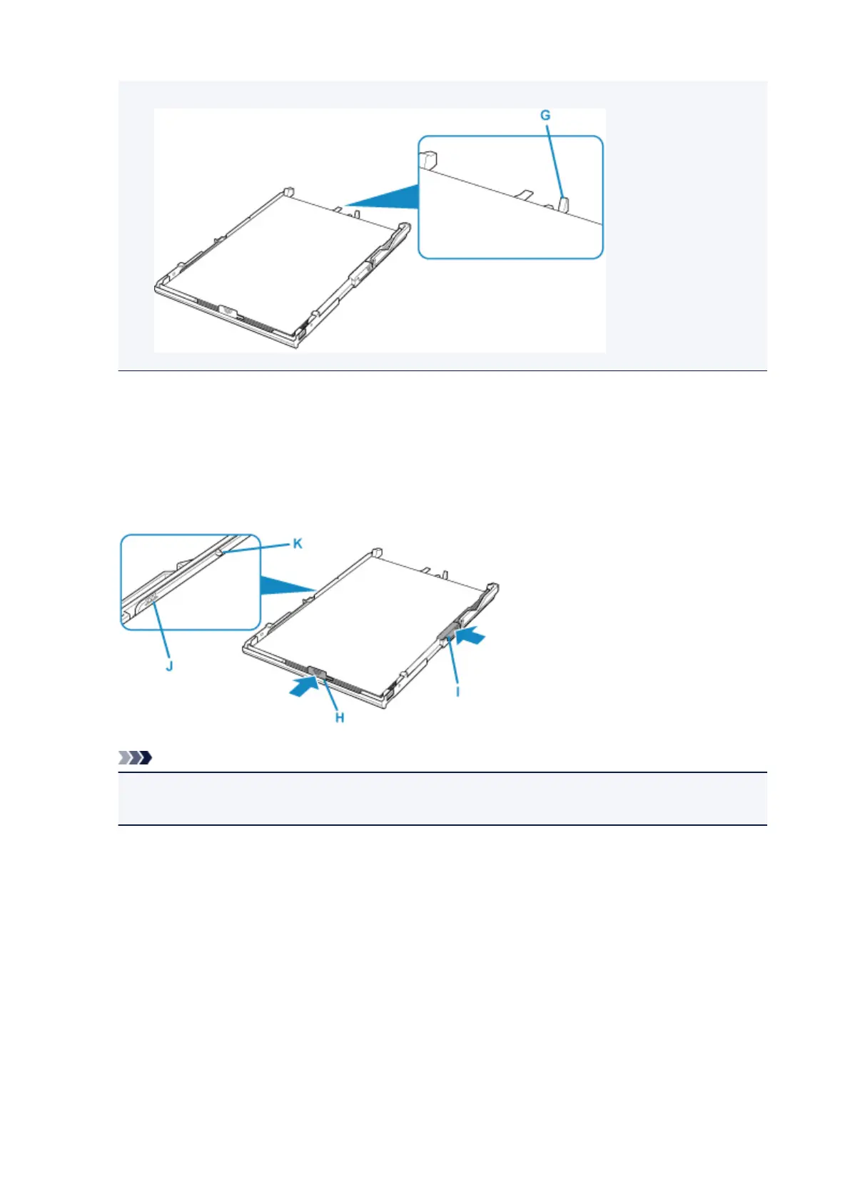 If the paper stack is in contact with the protrusion (G), the paper may not be fed properly.