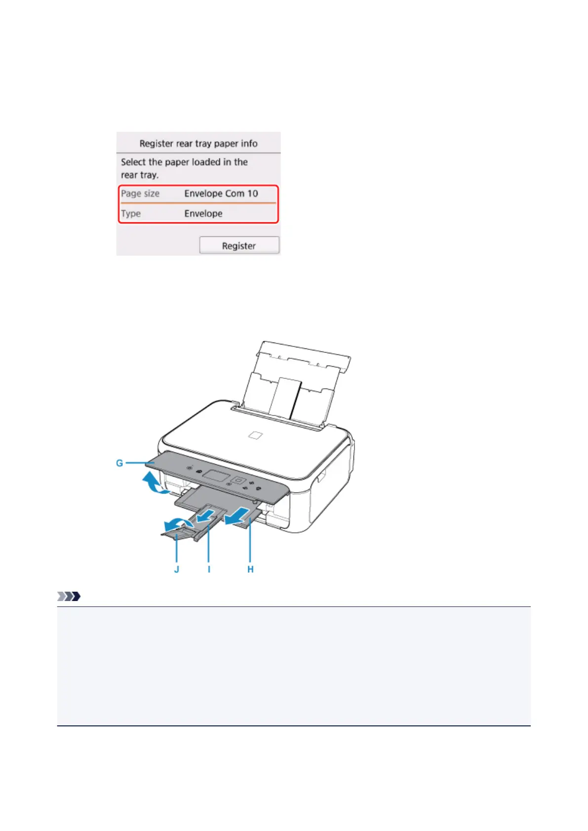 • After loading envelopes, select the size and type of the loaded envelopes on the print settings screen of