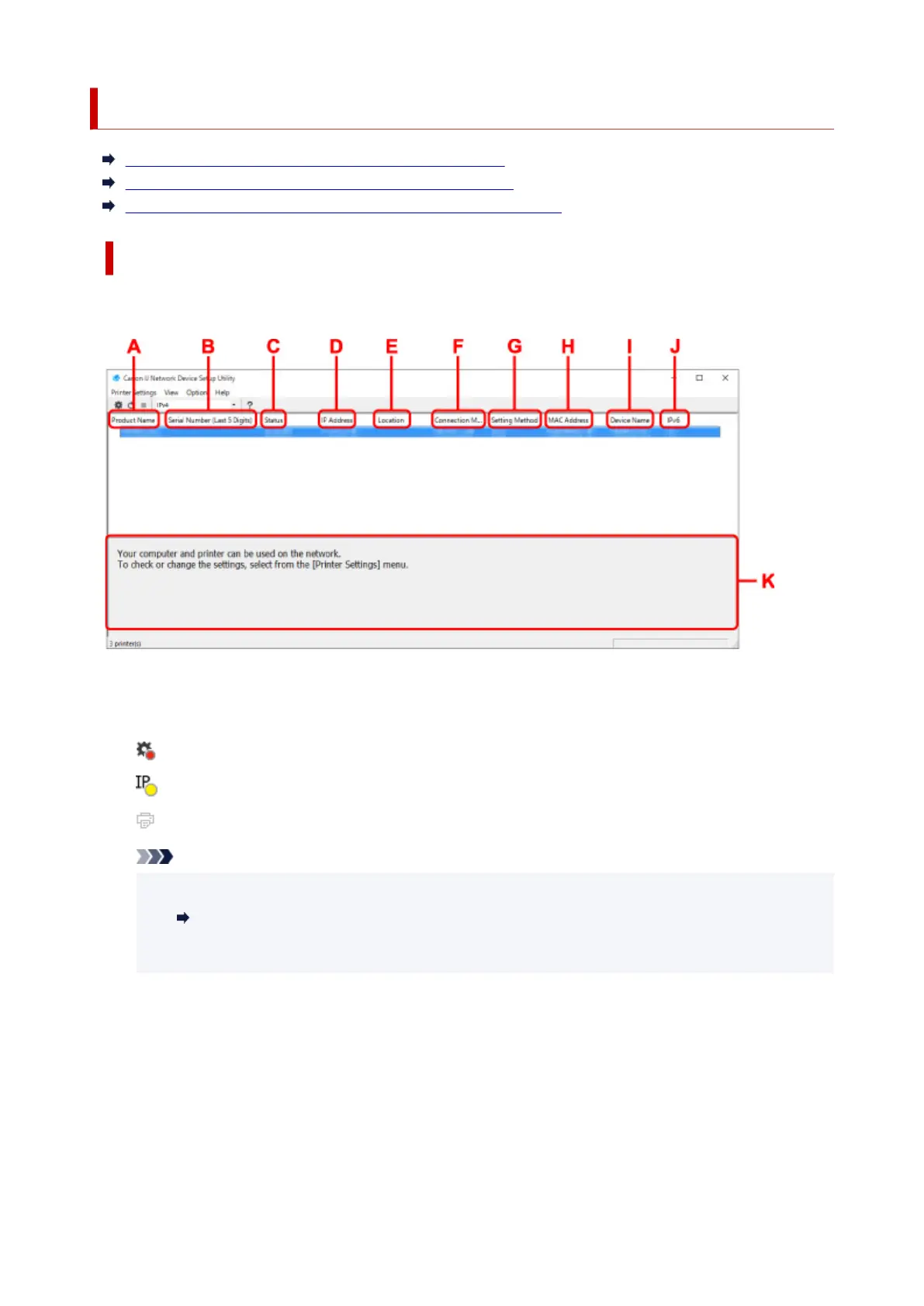 Items on Canon IJ Network Device Setup Utility Screen Toolbar