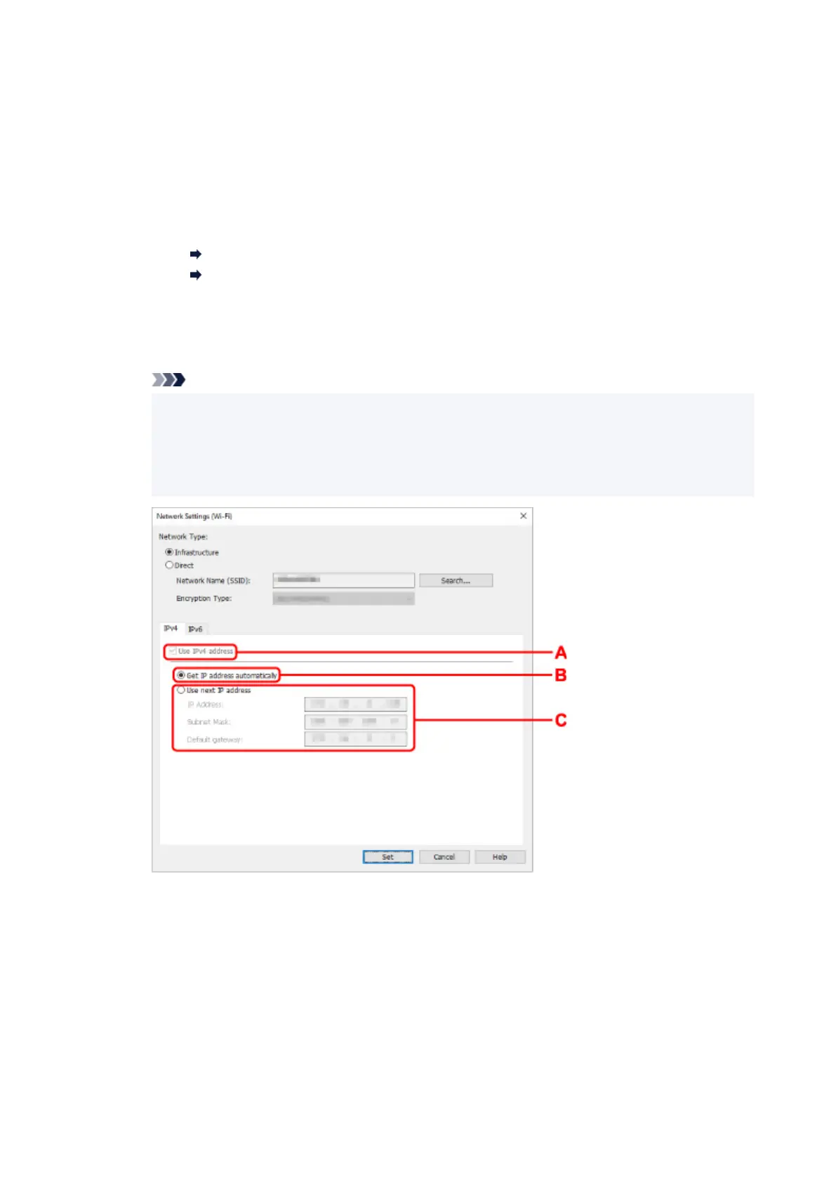 The setting items below are available only when Infrastructure is selected for Network