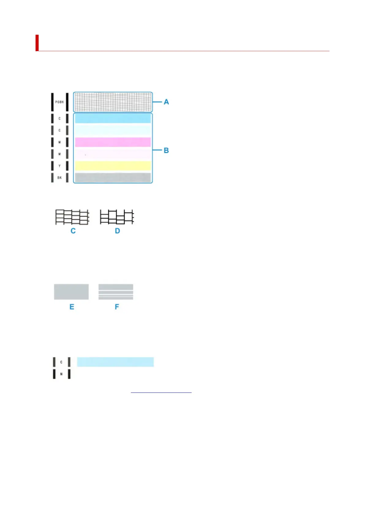 1. Check if there are missing lines in the pattern A or horizontal white streaks in the pattern B.