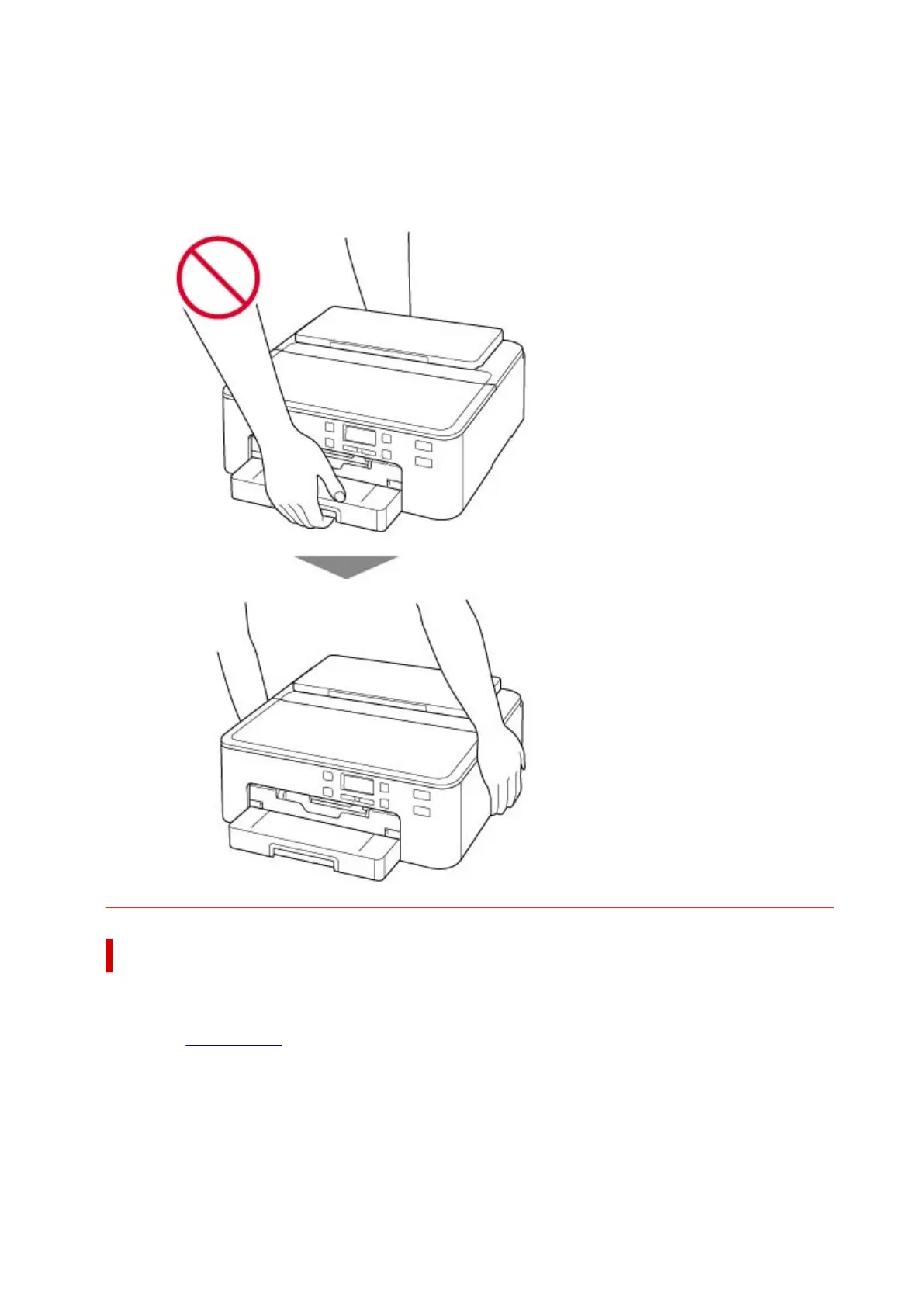 • Do not hold the printer by the cassette. Hold the printer by its sides and carry it with both hands.