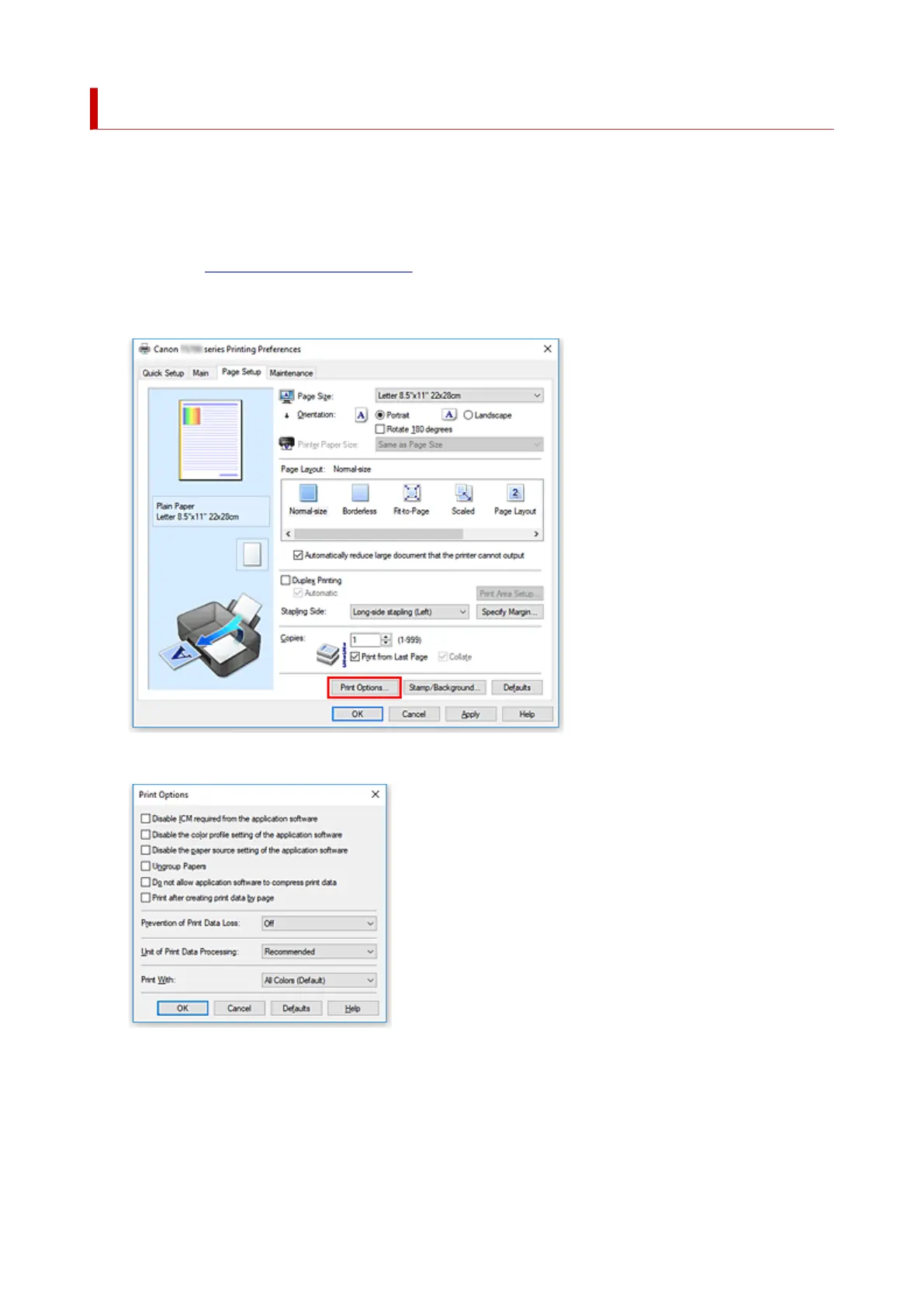 Click Print Options... on the Page Setup tab