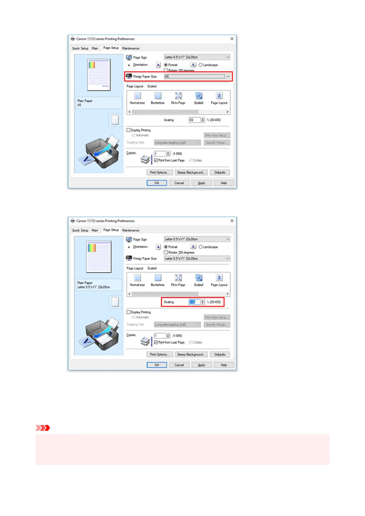 • When the application software which you used to create the original has the scaled printing function,