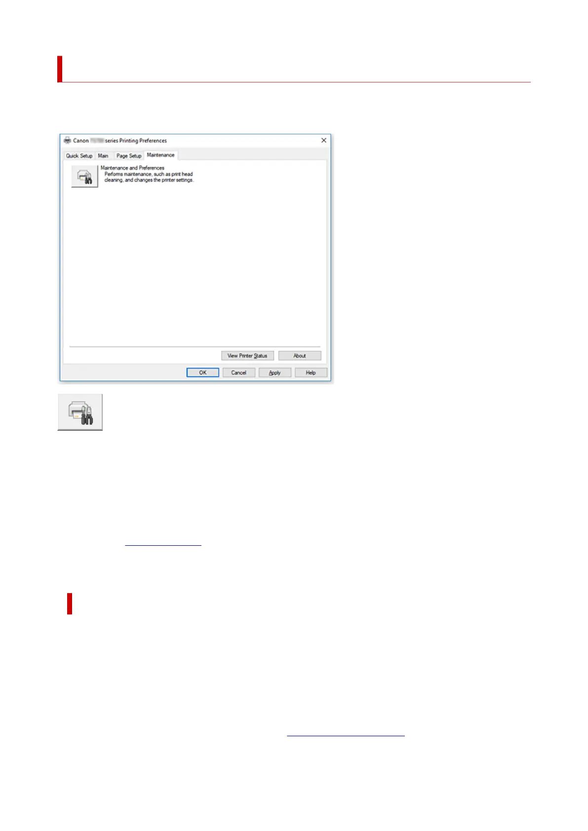 The Maintenance tab allows you to start the Canon IJ Printer Assistant Tool or check the status of the