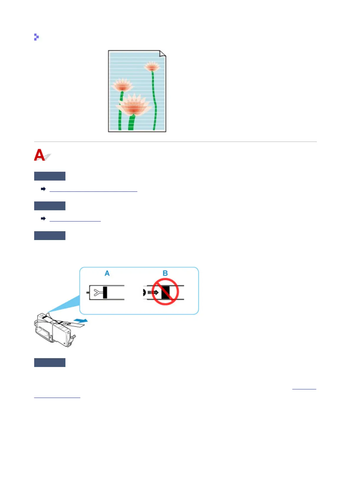 Check status of ink tanks. Replace ink tank if ink has run out.