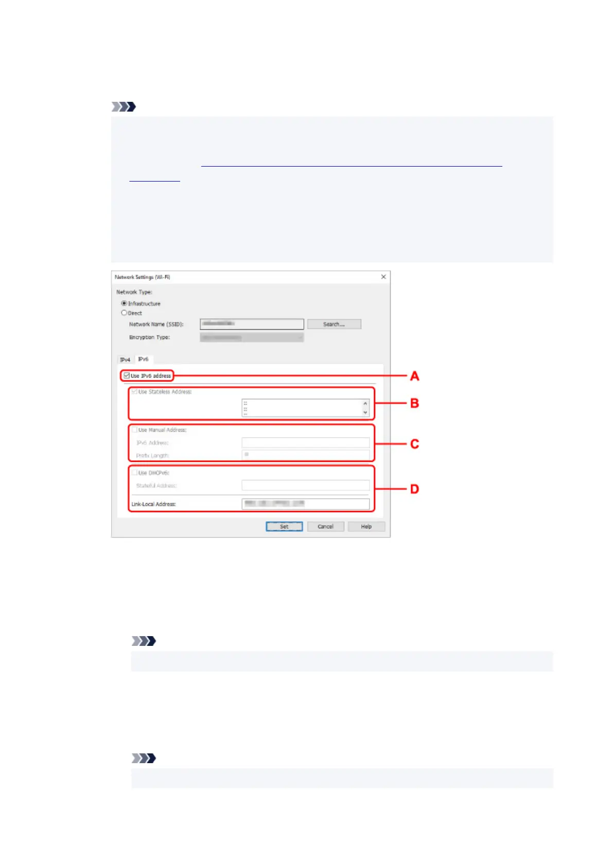 • The setting items below are available only when Infrastructure is selected for Network
