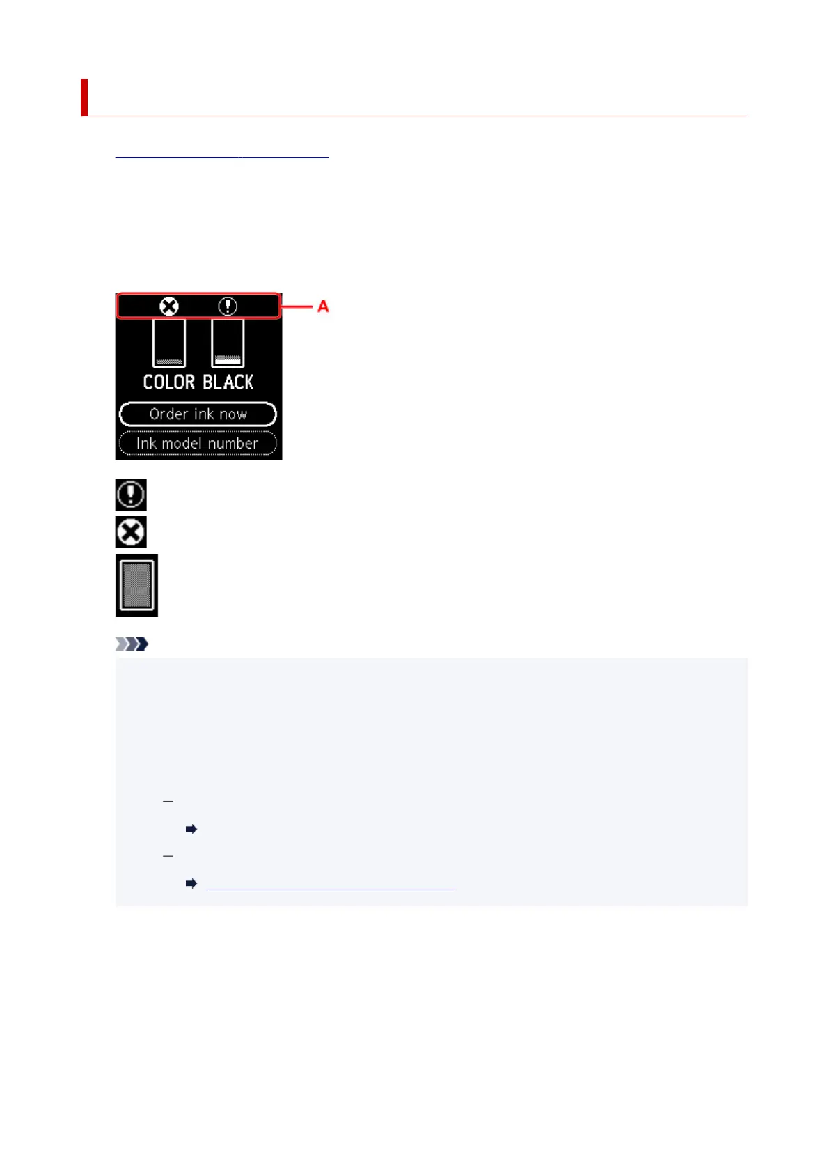 A symbol appears in the area A if there is any information about the remaining ink level.