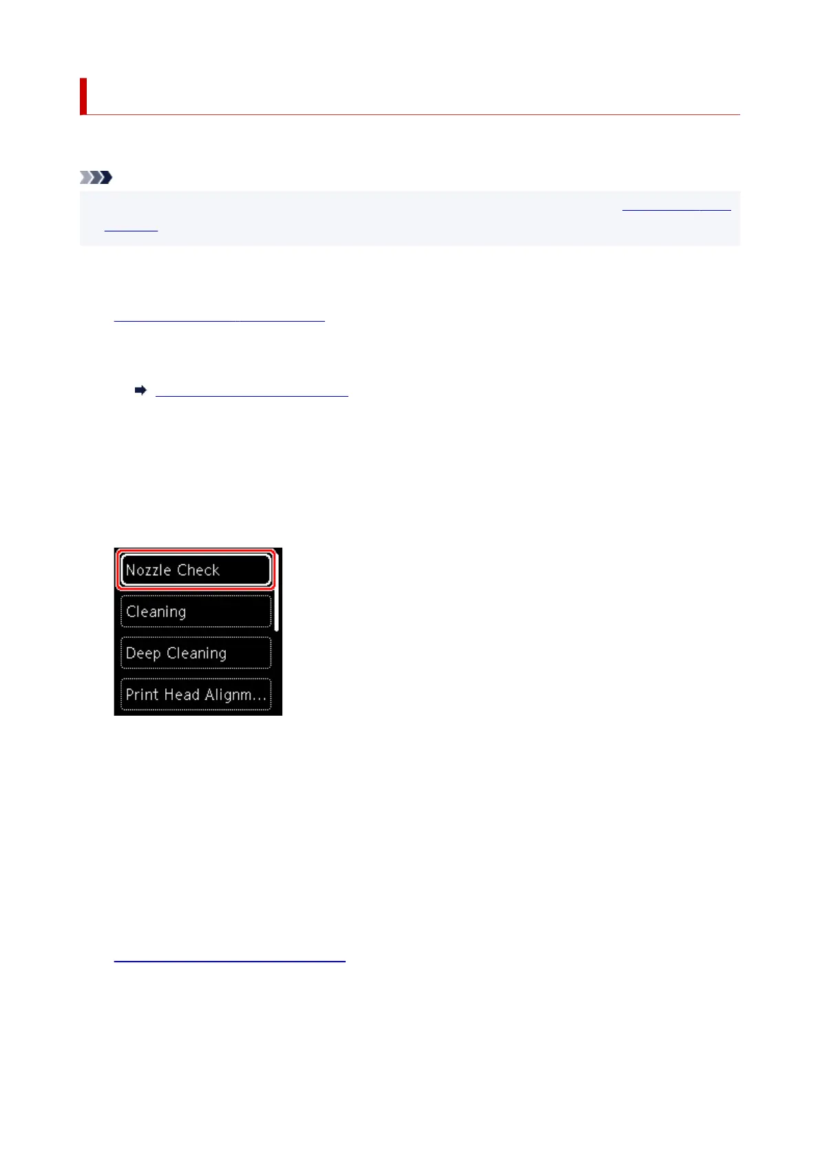 • If the remaining ink level is low, the nozzle check pattern will not be printed correctly. Replace the FINE