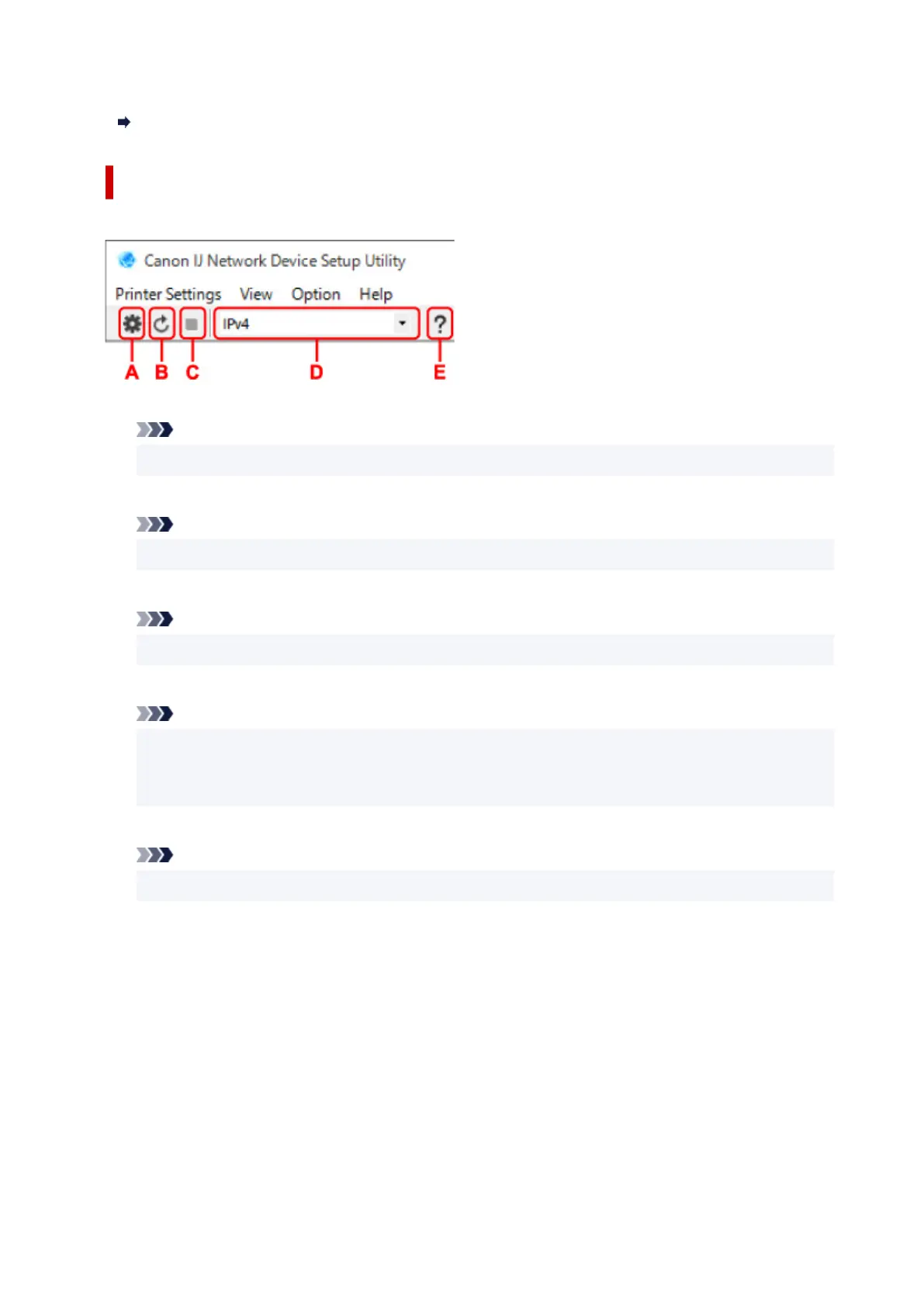 Items on Canon IJ Network Device Setup Utility Screen Toolbar