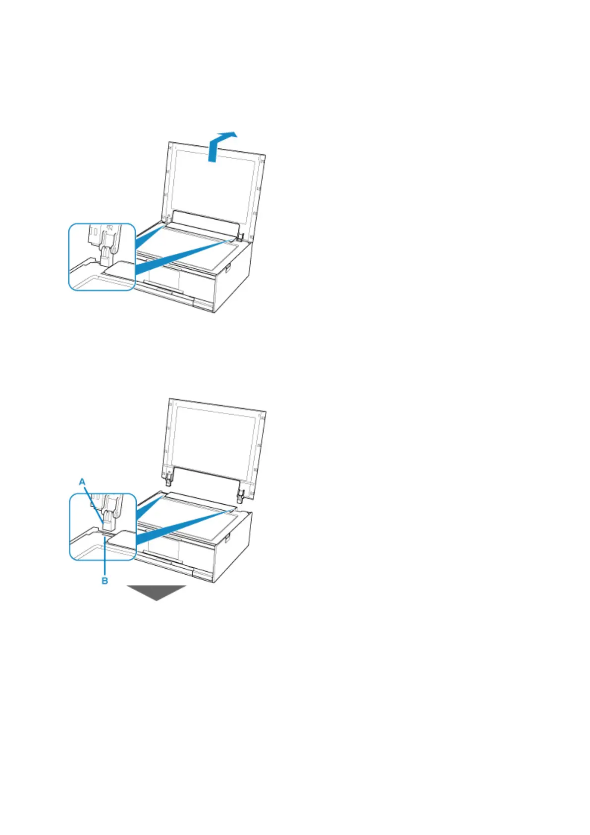 Fit both hinges (A) of the document cover into the holder (B) and insert both hinges of the document cover