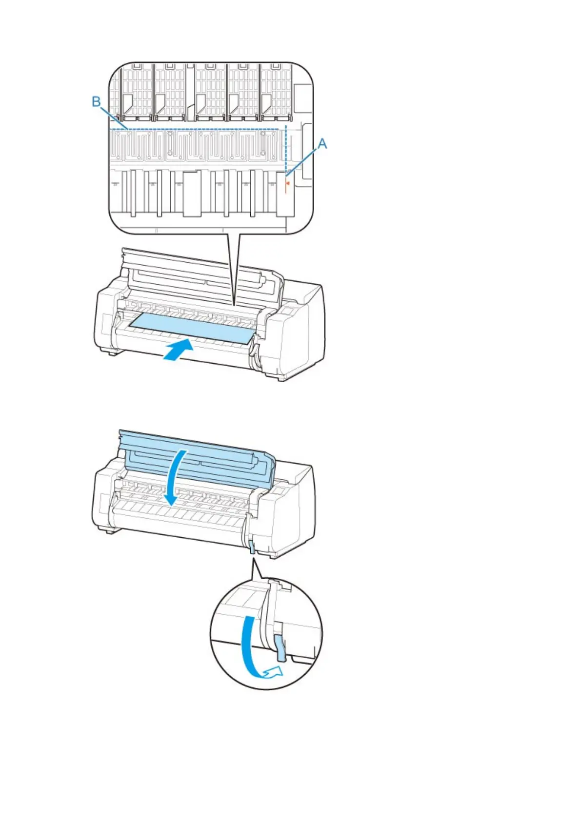 Lower release lever and close top cover.
