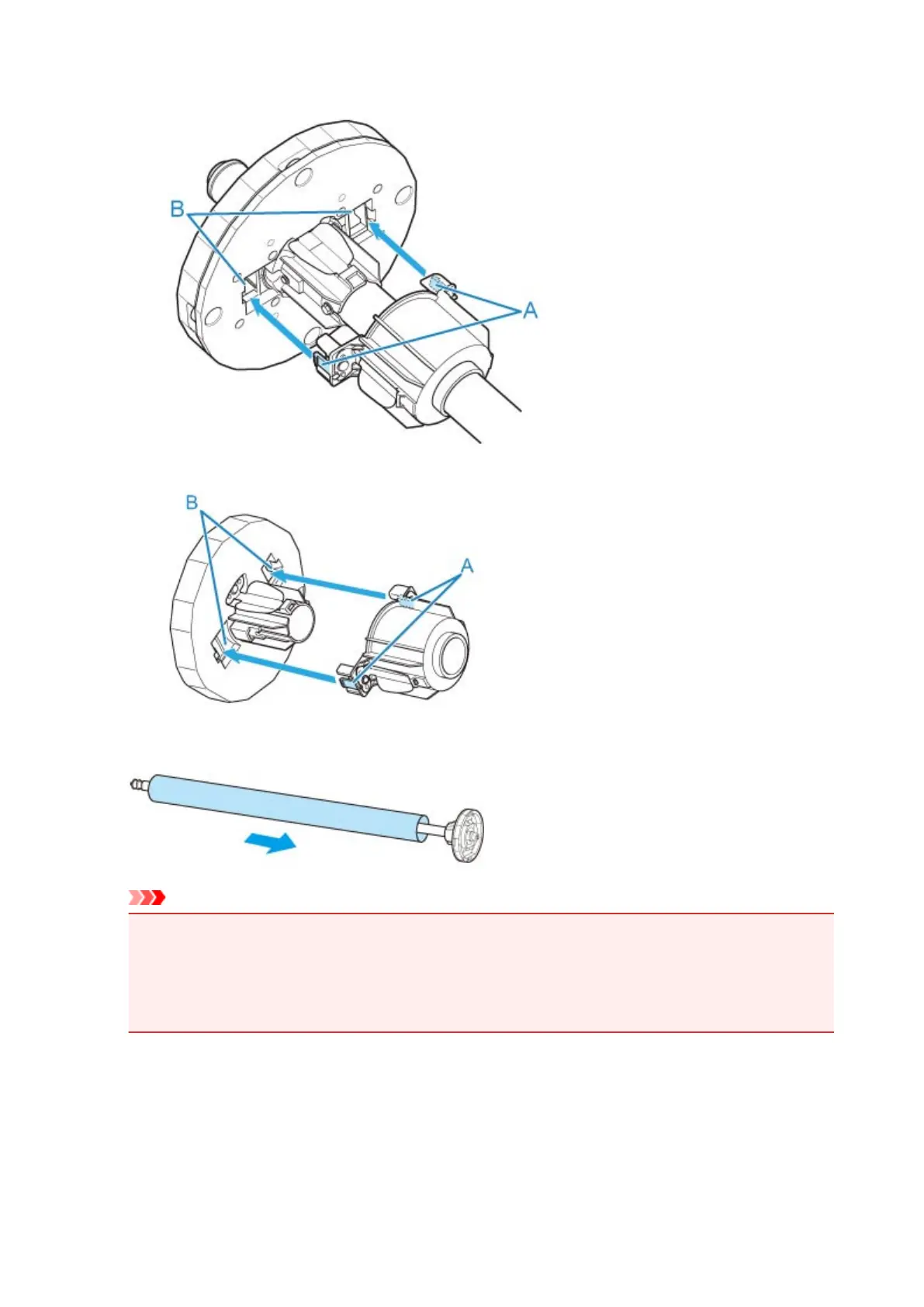 (B), push firmly until holder stopper flange (A) touches roll paper. Lift holder stopper lever