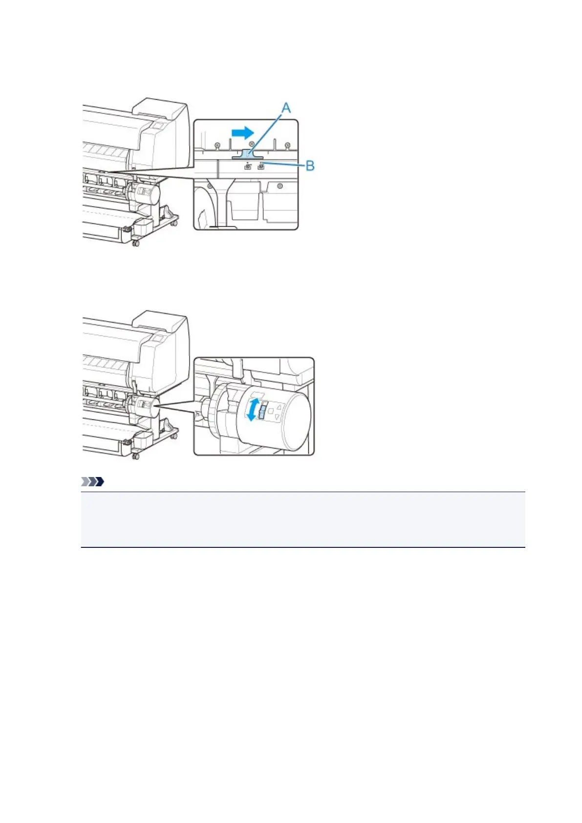 9. Change the feed flap switch on top of the roll unit so that the switch indicator (A) is aligned