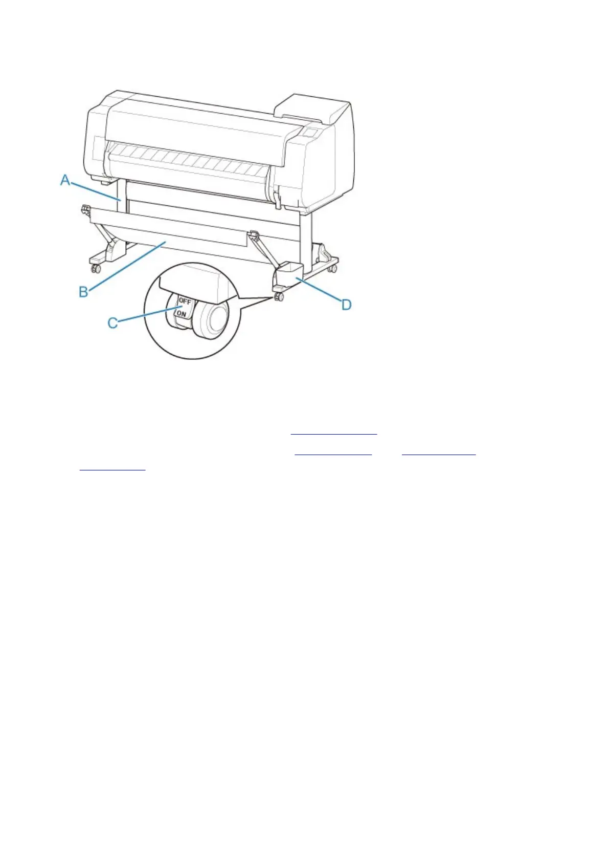 A stand that holds the printer. Equipped with casters to facilitate moving the printer.