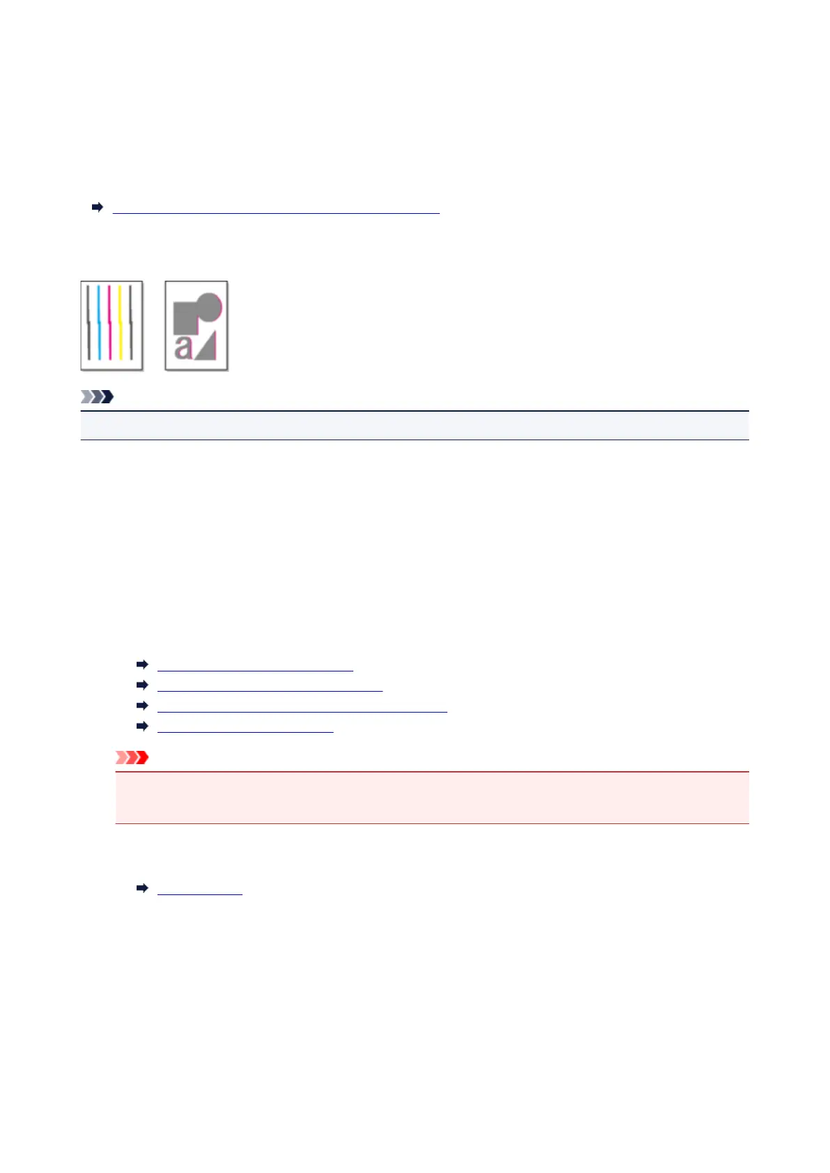 If printed vertical lines are warped or colors are out of alignment, execute Print head alignment and adjust