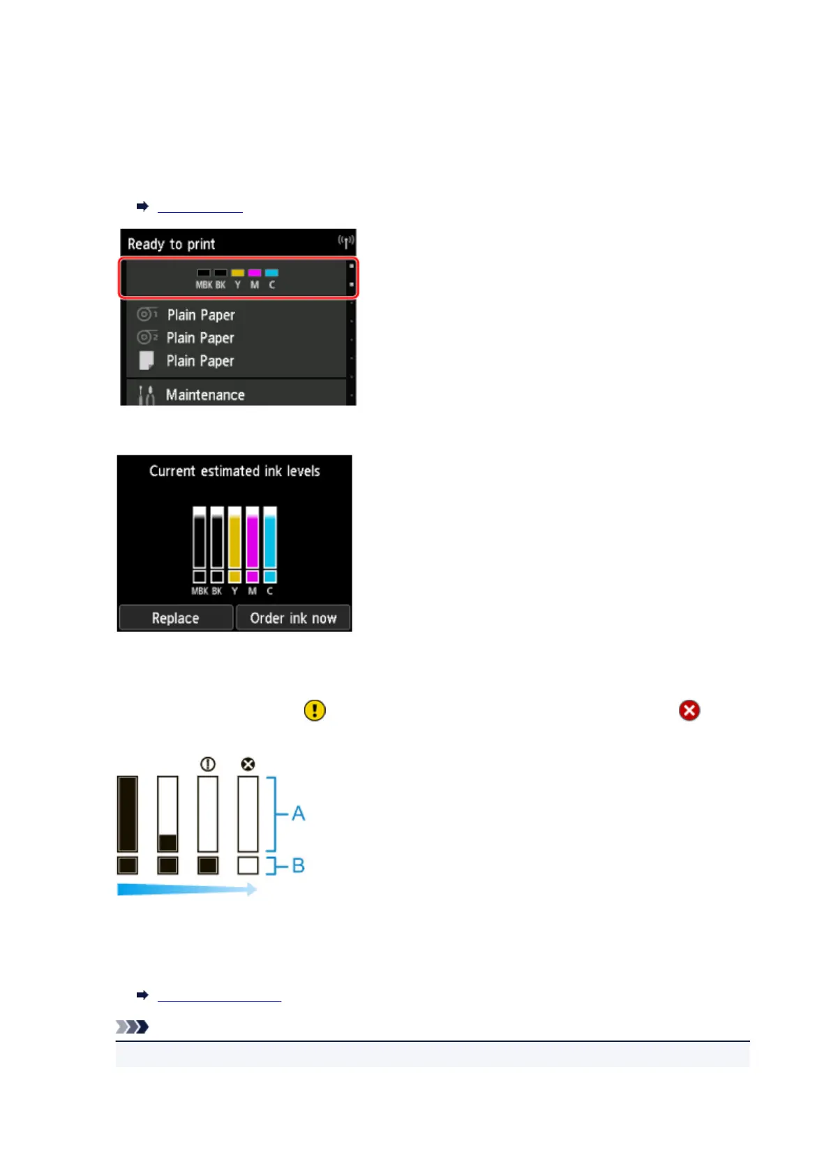 indicating to check the remaining ink levels, or after tasks that consume a lot of ink such as large-format