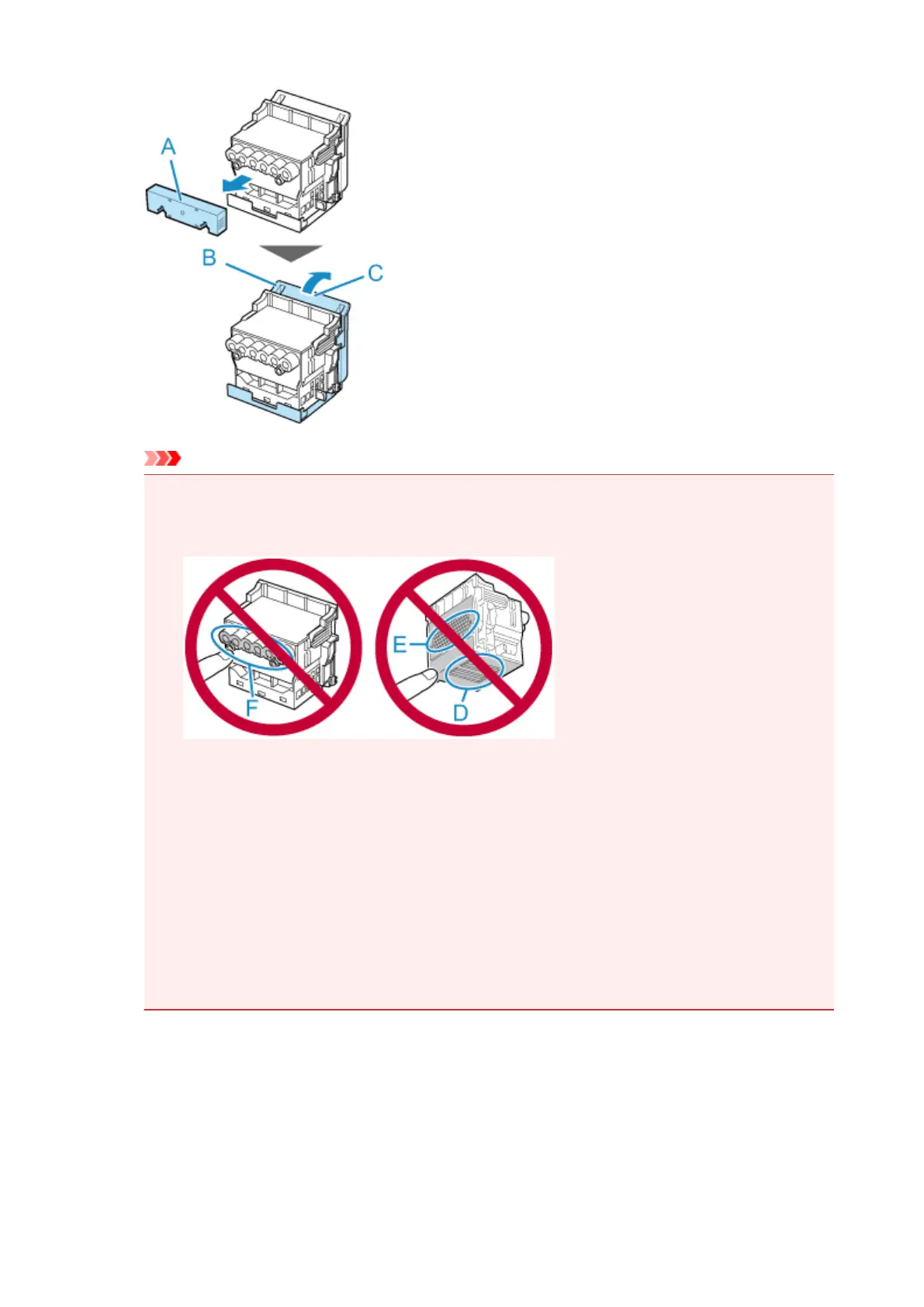 Never touch the ink holes (F). This may affect printing quality.