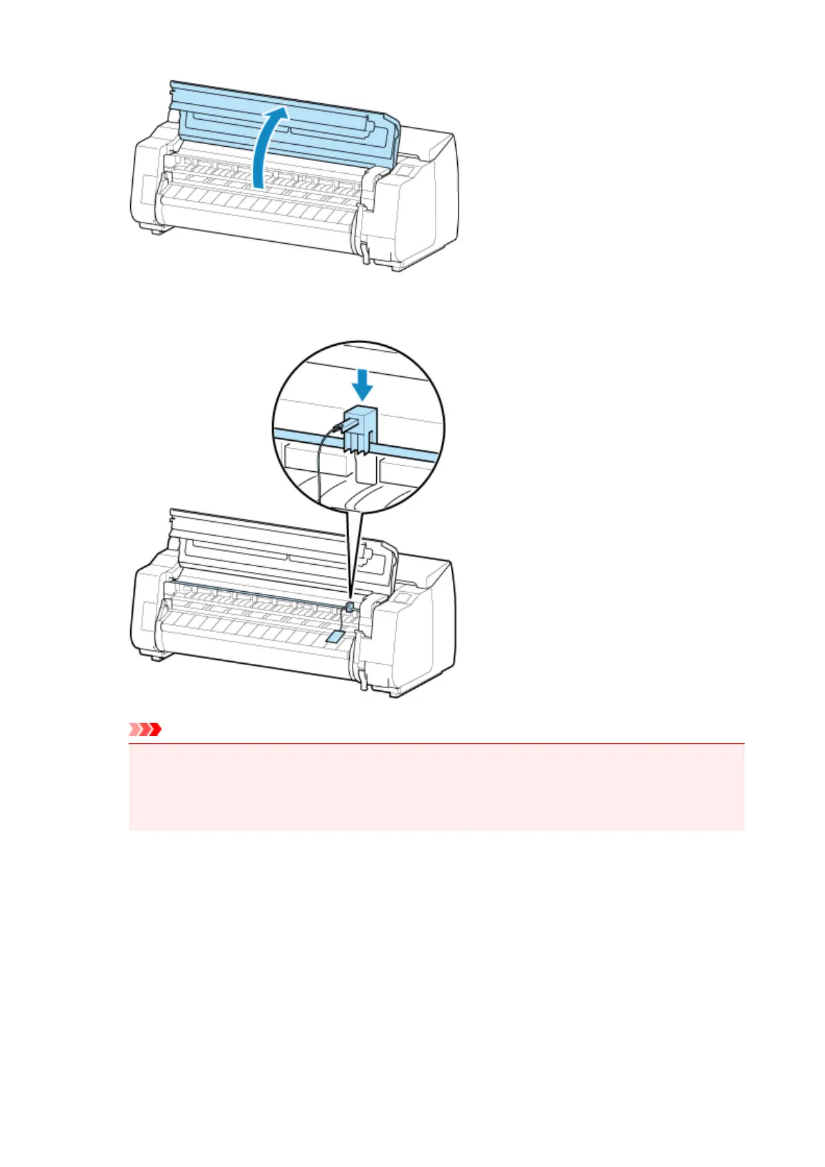 Do not touch the linear scale (A), carriage shaft (B), or ink tube stabilizer (C). Touching these