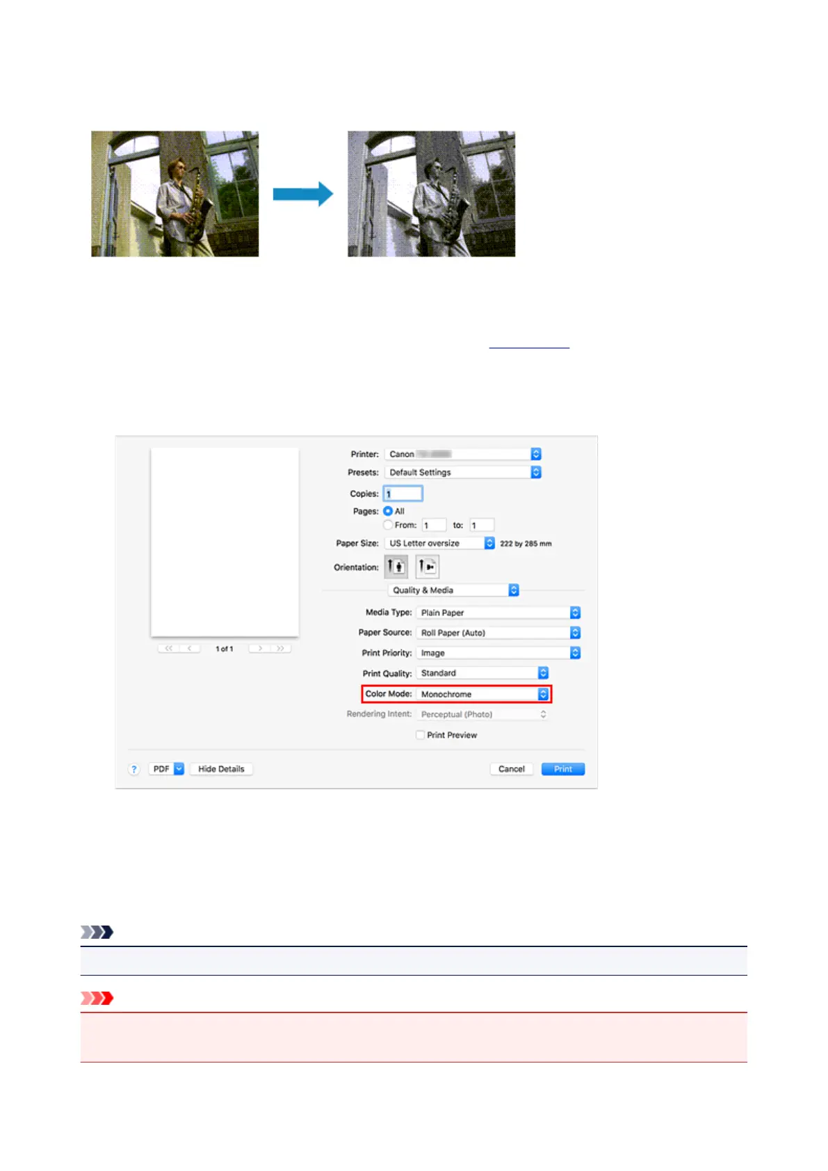 • Depending on the settings in Media Type and Print Priority, Monochrome Bitmap appears grayed