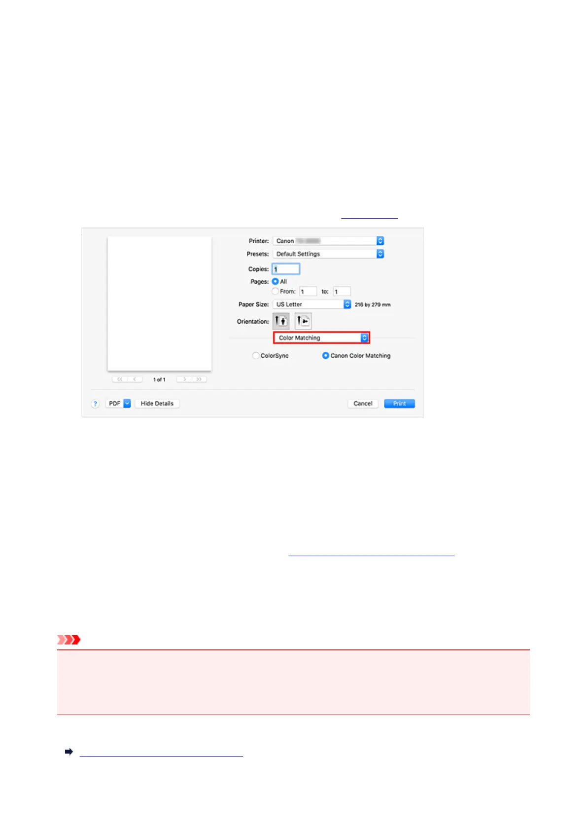 software, Canon Color Matching cannot be selected because ColorSync is selected automatically.