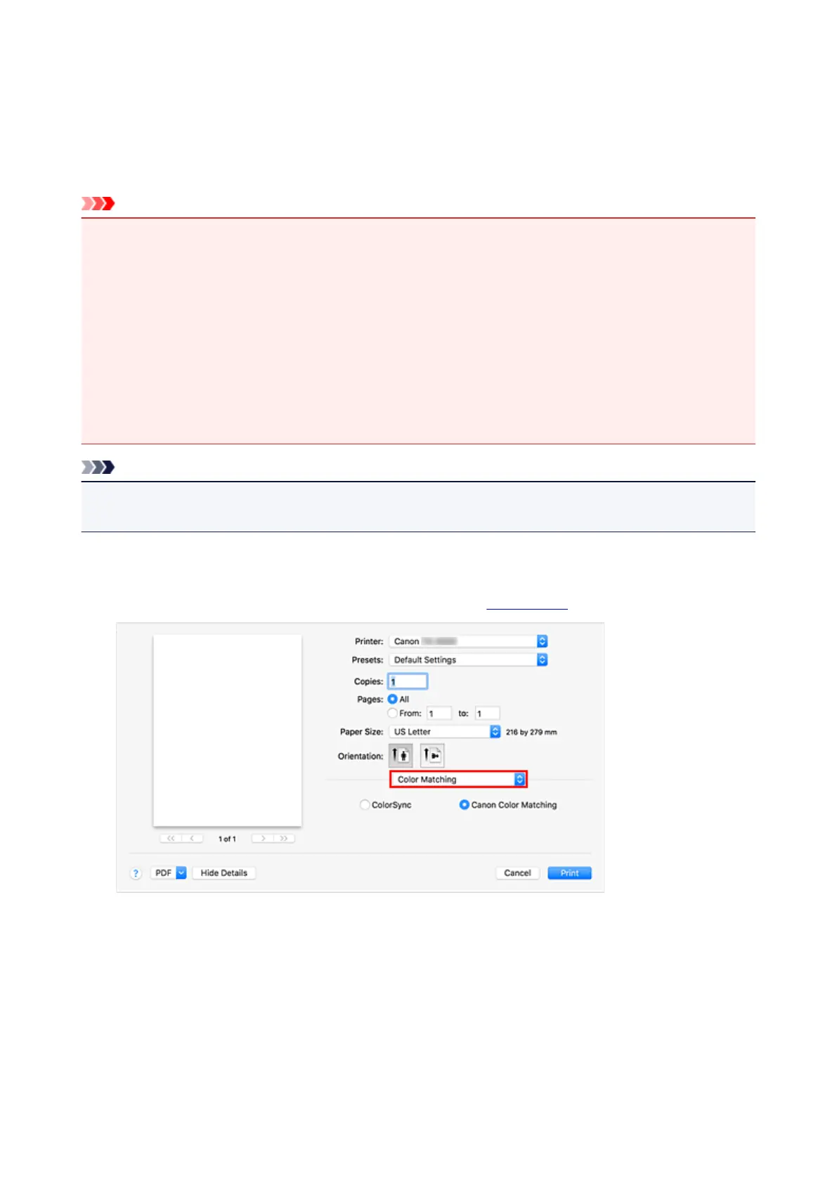 • When printing using driver matching, Canon recommends that you set the monitor and the environment
