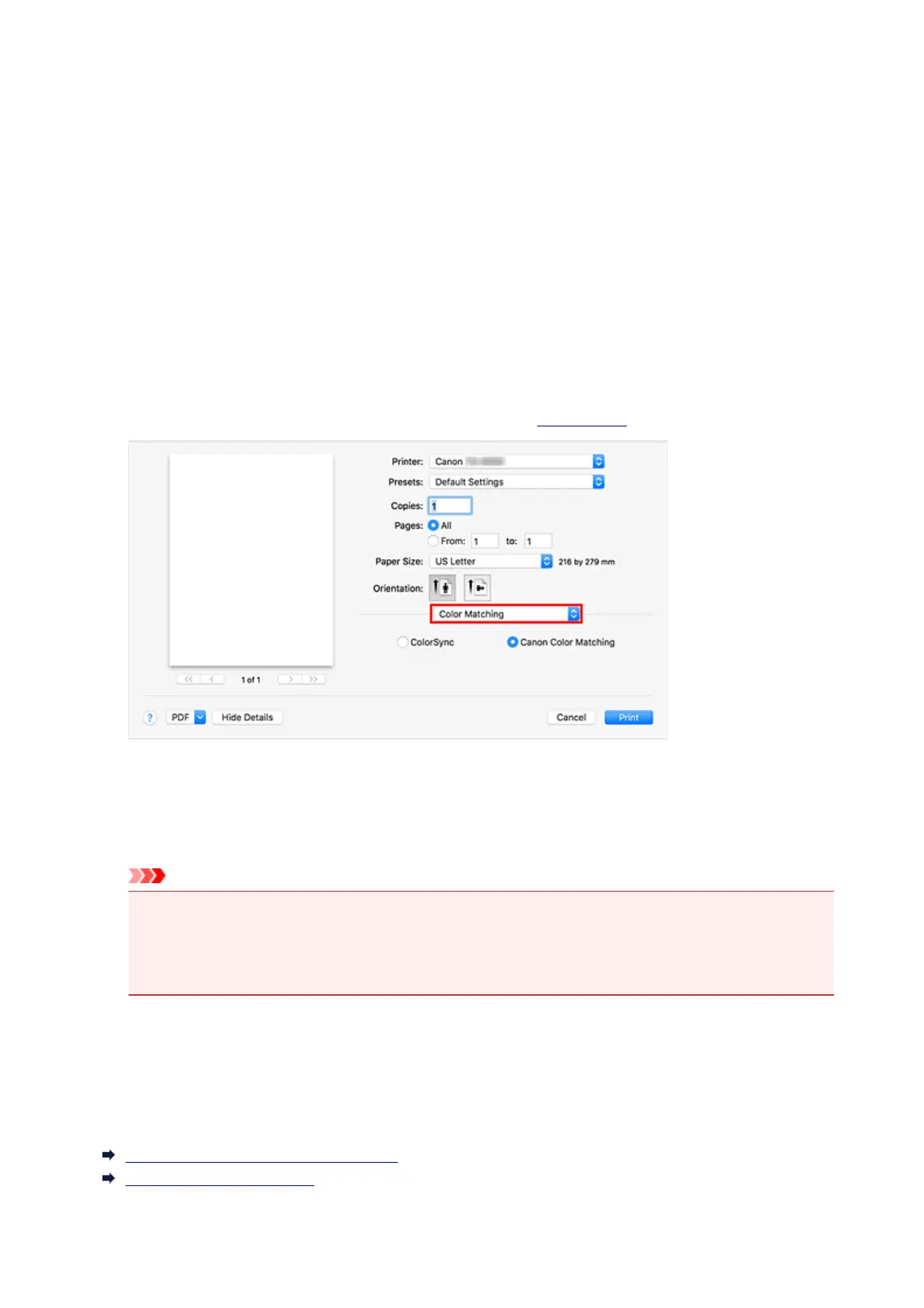 system (ColorSync) built-into macOS when printing. The printer prints the editing and touch-up results of the
