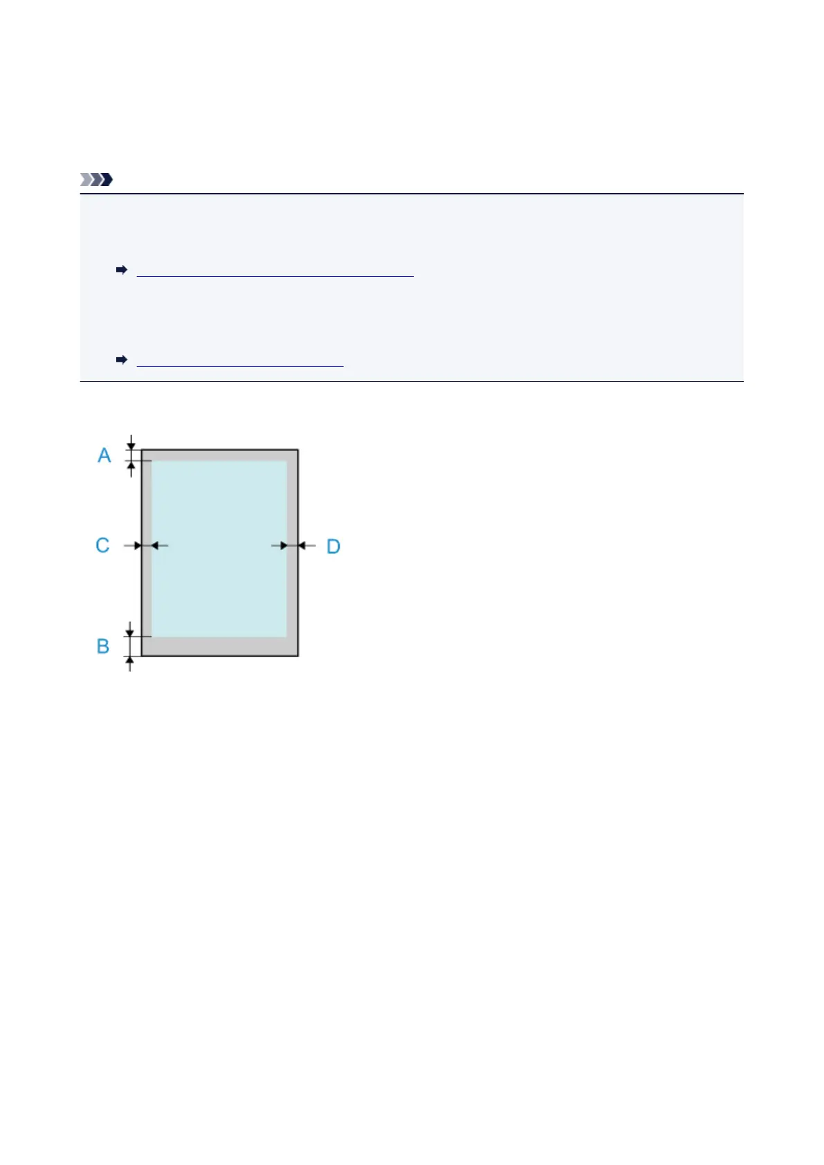 borderless printing, the actual printing area corresponds to the paper size minus the space for this margin.