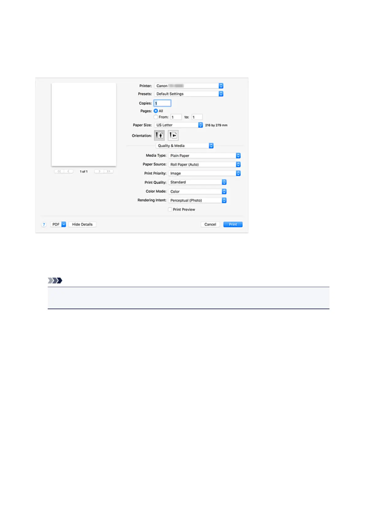 Depending on the paper settings on the printer driver and the paper information registered to the
