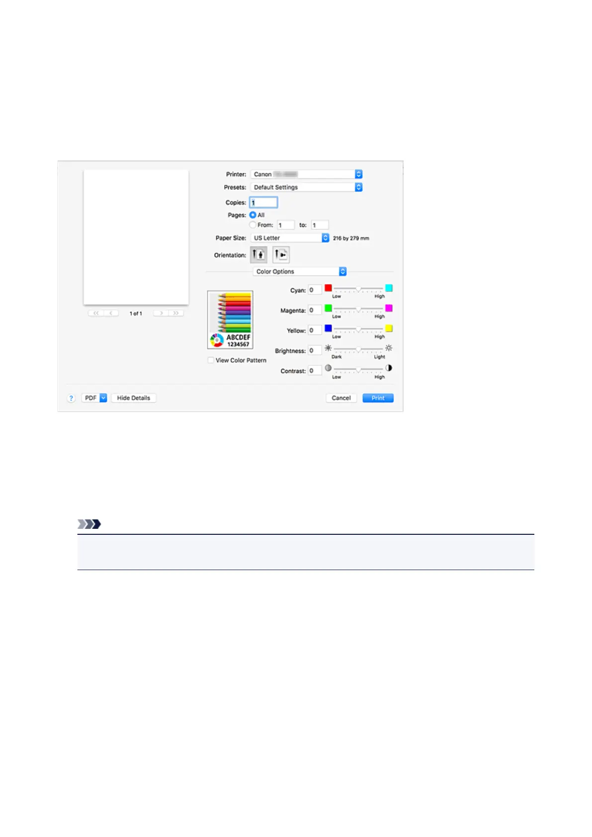 This dialog allows you to adjust the print color as you like. If the color of the printed image is not as