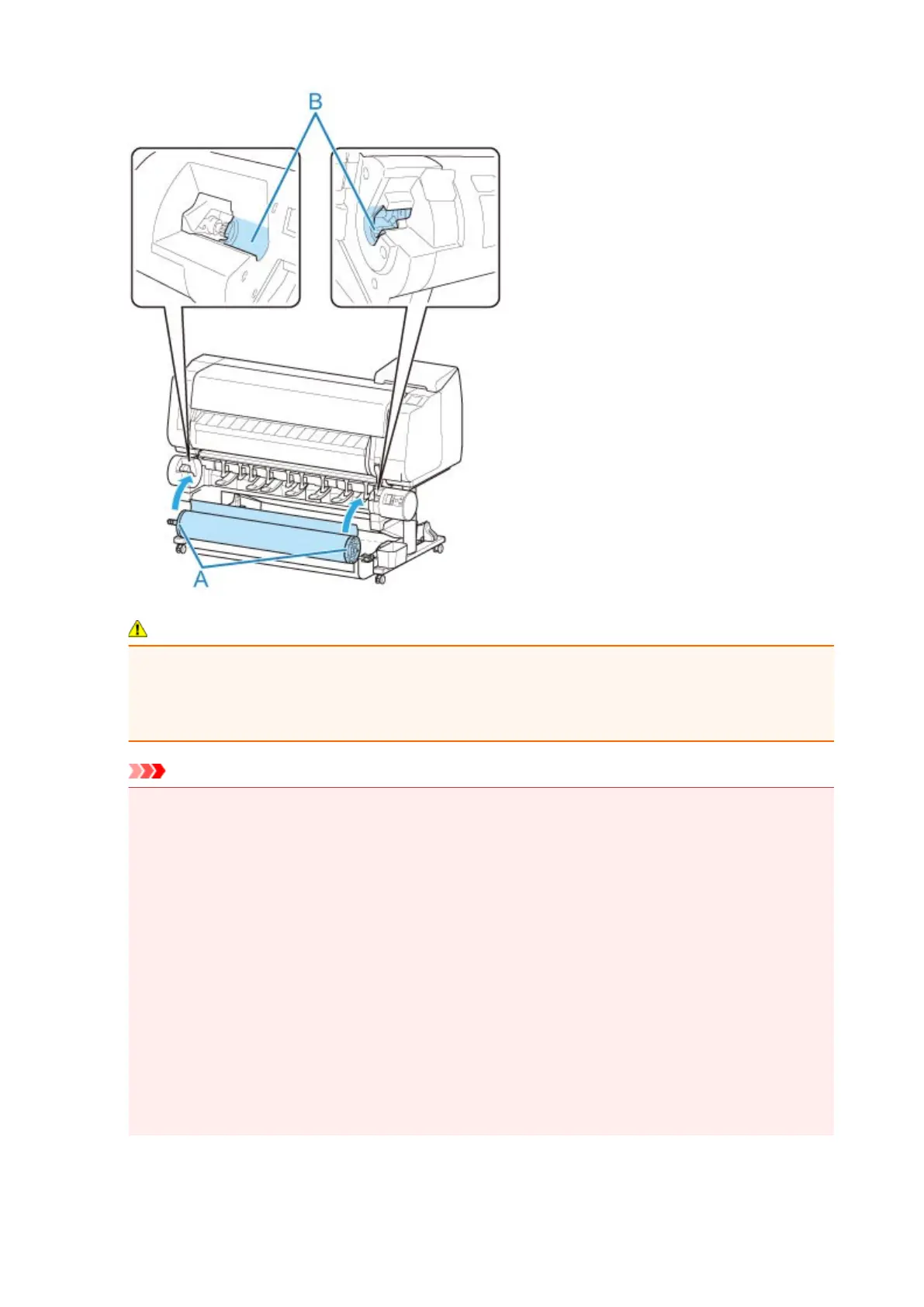 • Be careful not to pinch your fingers between the Roll Holder shaft and the guide grooves (B) when