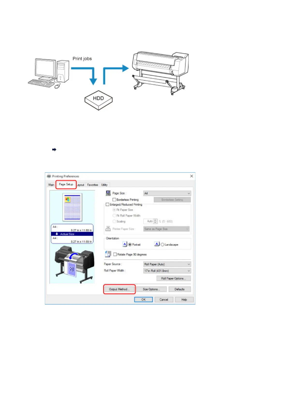 3. Click Output Method to display Output Method dialog box.