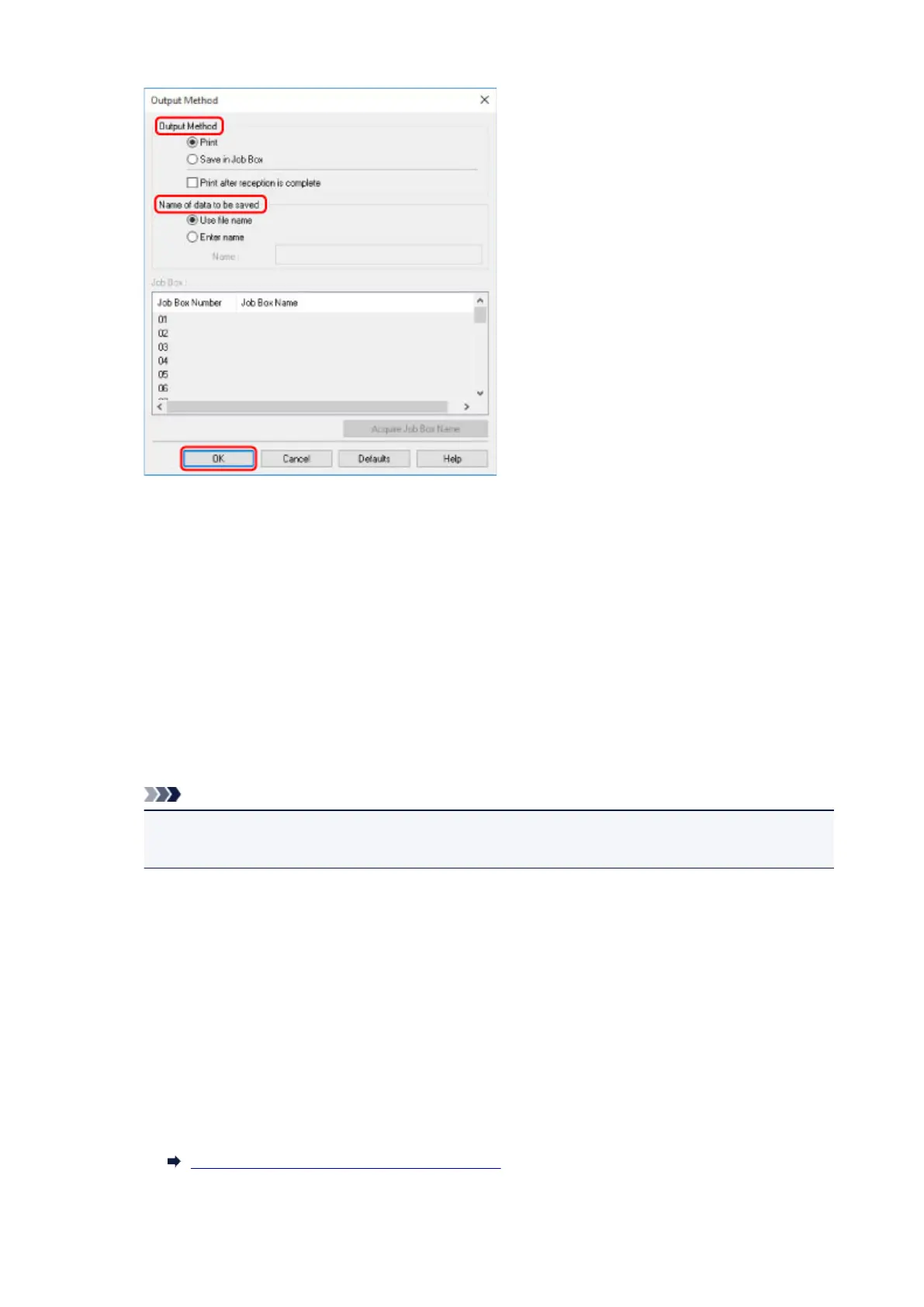 • Click Acquire Job Box Name to display personal box names in the Job Box list, as acquired