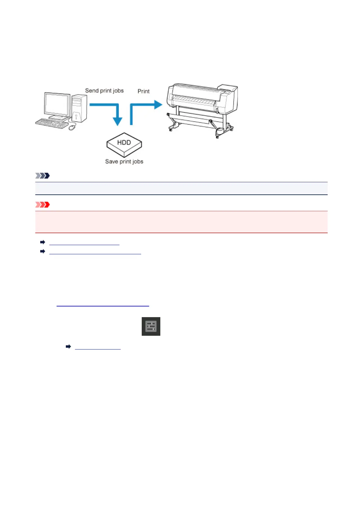 the printer, specify the output method and select the setting to perform printing after saving printing data