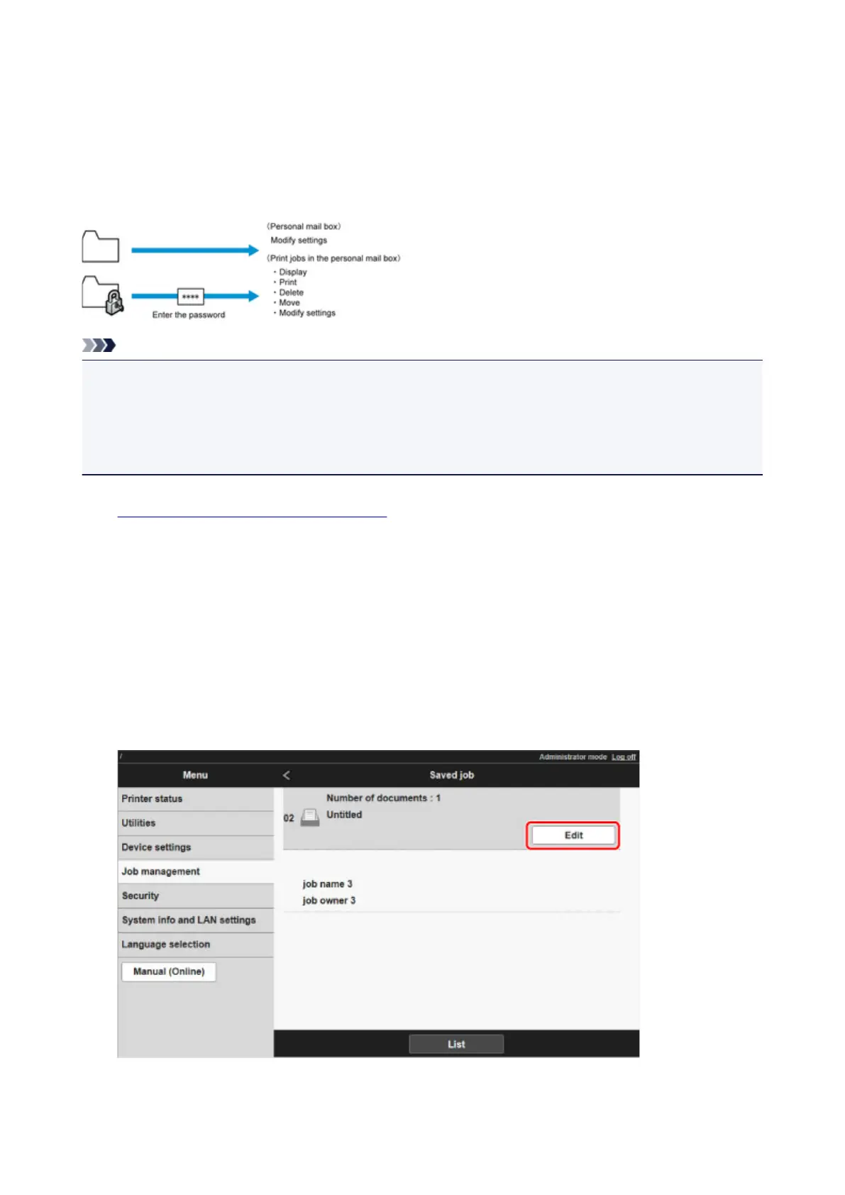 required to modify the personal box settings, as well as to display, print, delete, move, and modify jobs