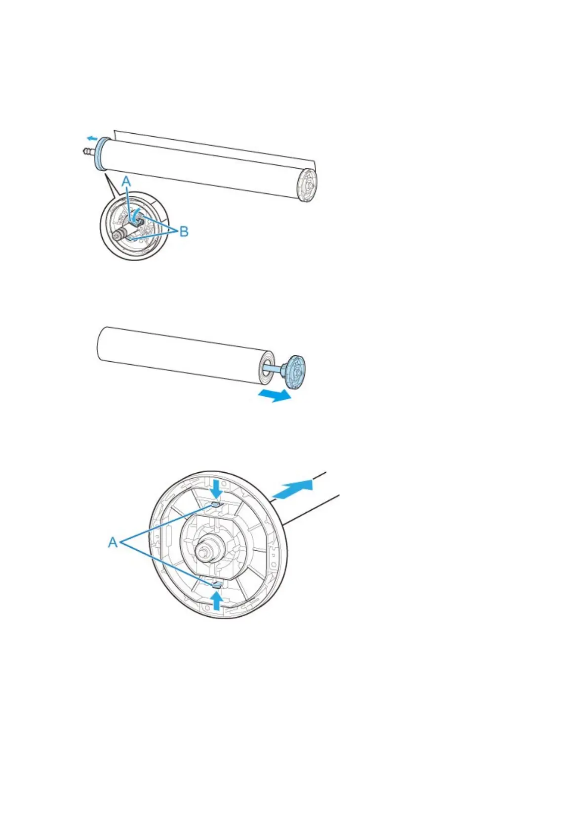 To remove 3-Inch Paper Core Attachment, press tabs (A) inward and remove attachment.