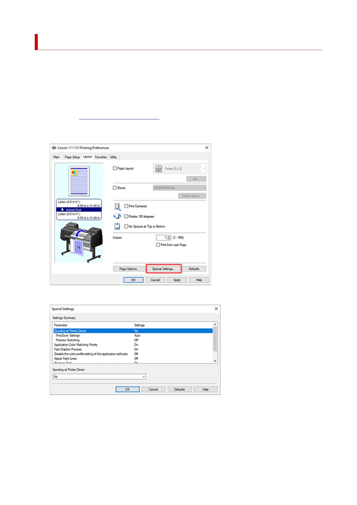 Click Special Settings... on the Layout tab