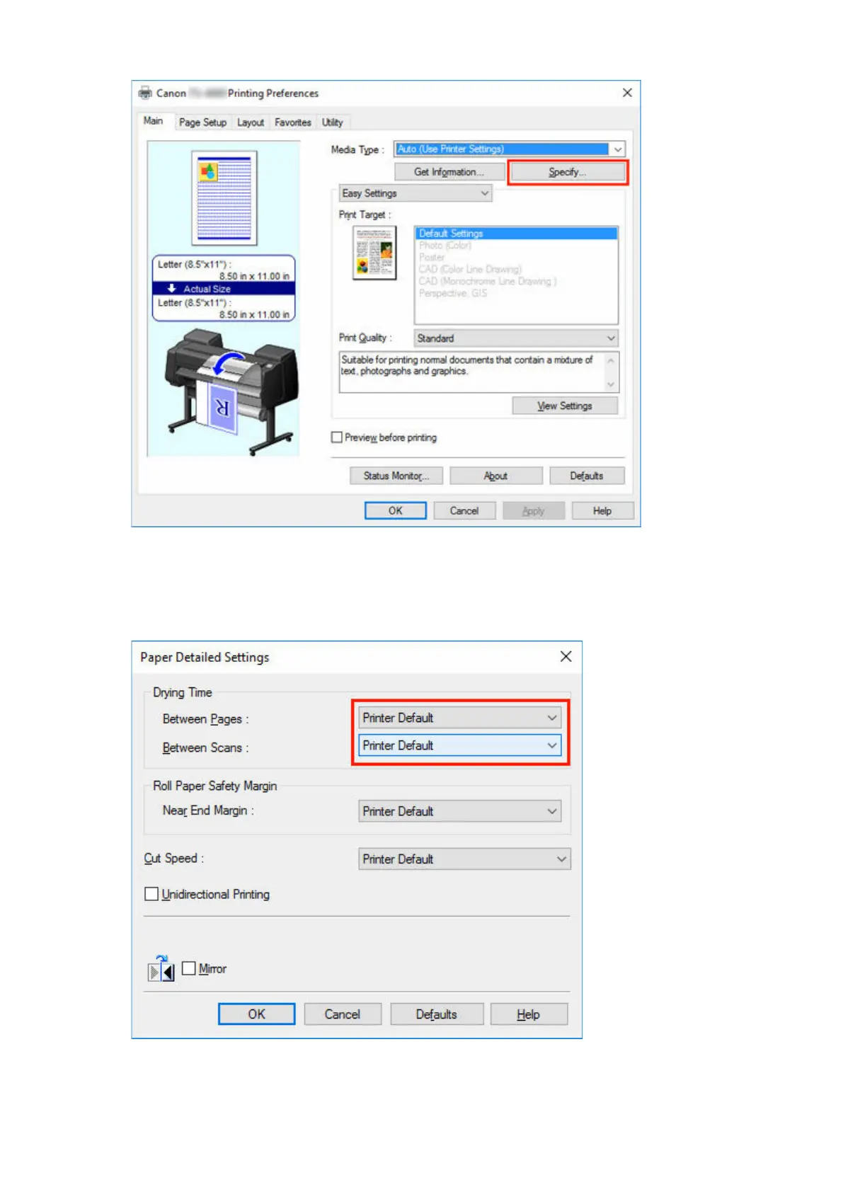 the lists for Between Pages and Between Scans in Drying Time, and then click OK.