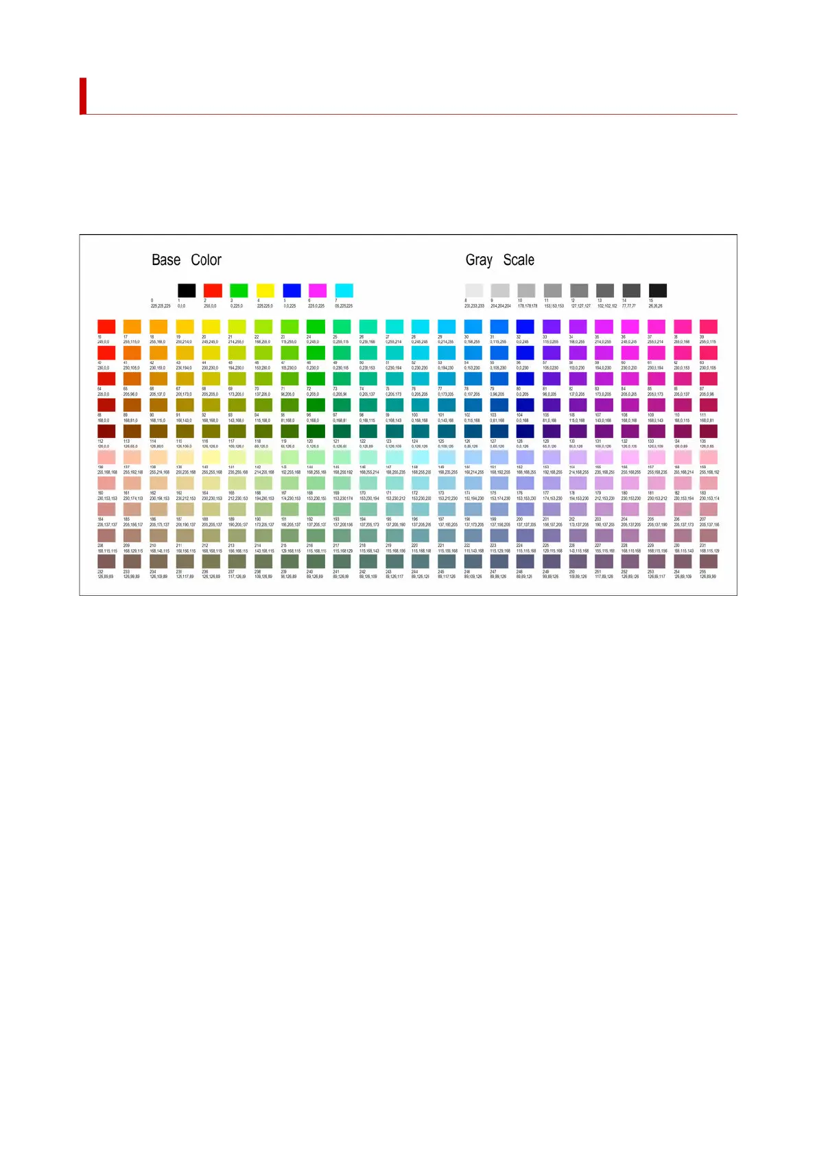 Prints out the sample (256 colors) of the color specified in each pen number. The coloring also changes