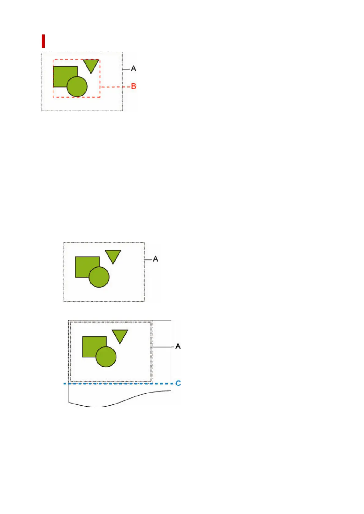 This section describes Detect image size settings and printed images for when the drawing range is set