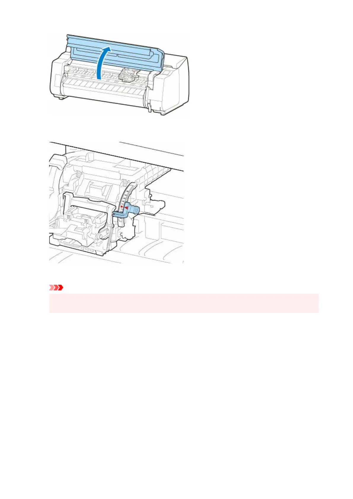 Do not touch the linear scale (A), carriage shaft (B), or ink tube stabilizer (C). Touching these may