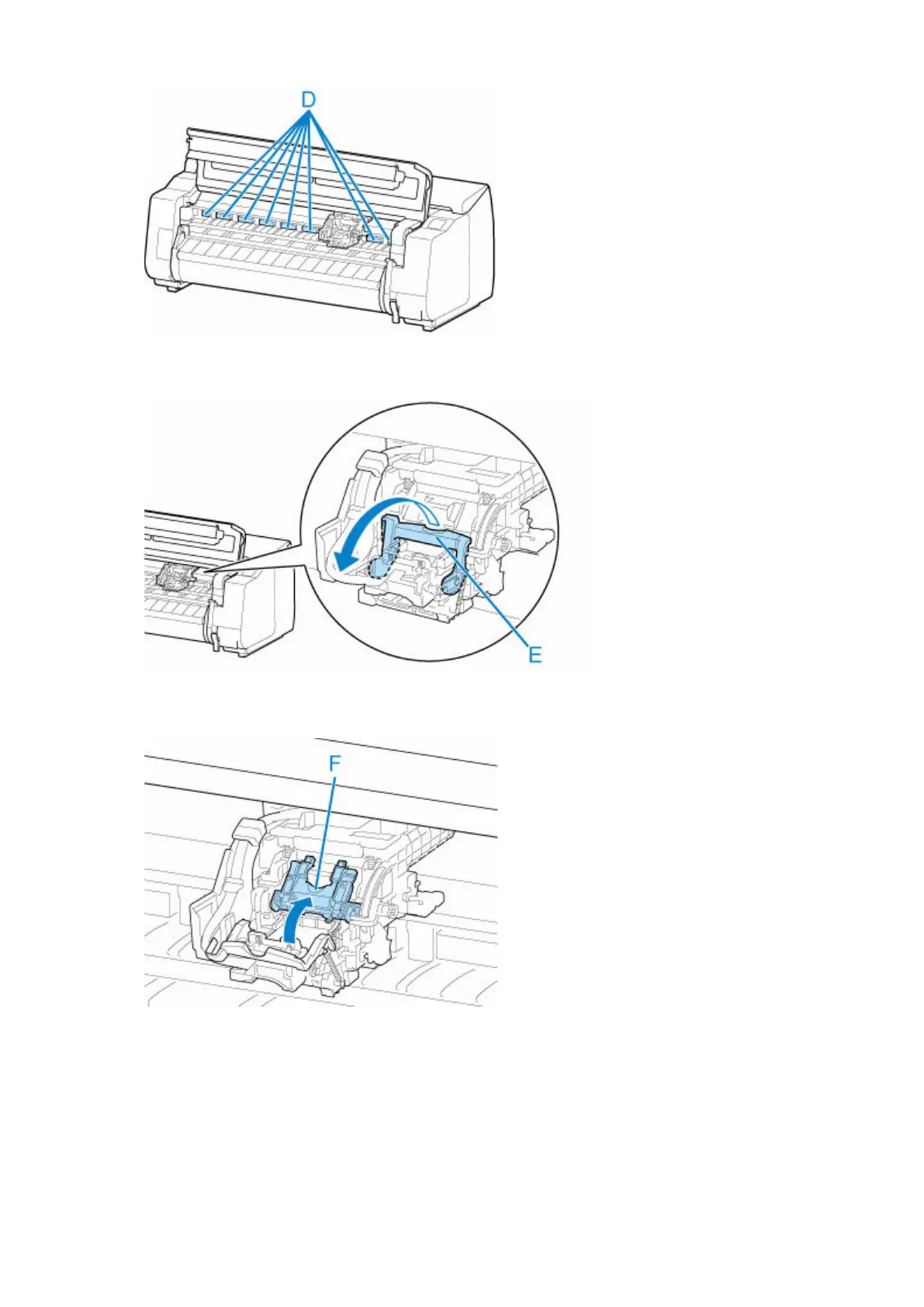 10. Grab grip (F) and open print head locking cover.10.