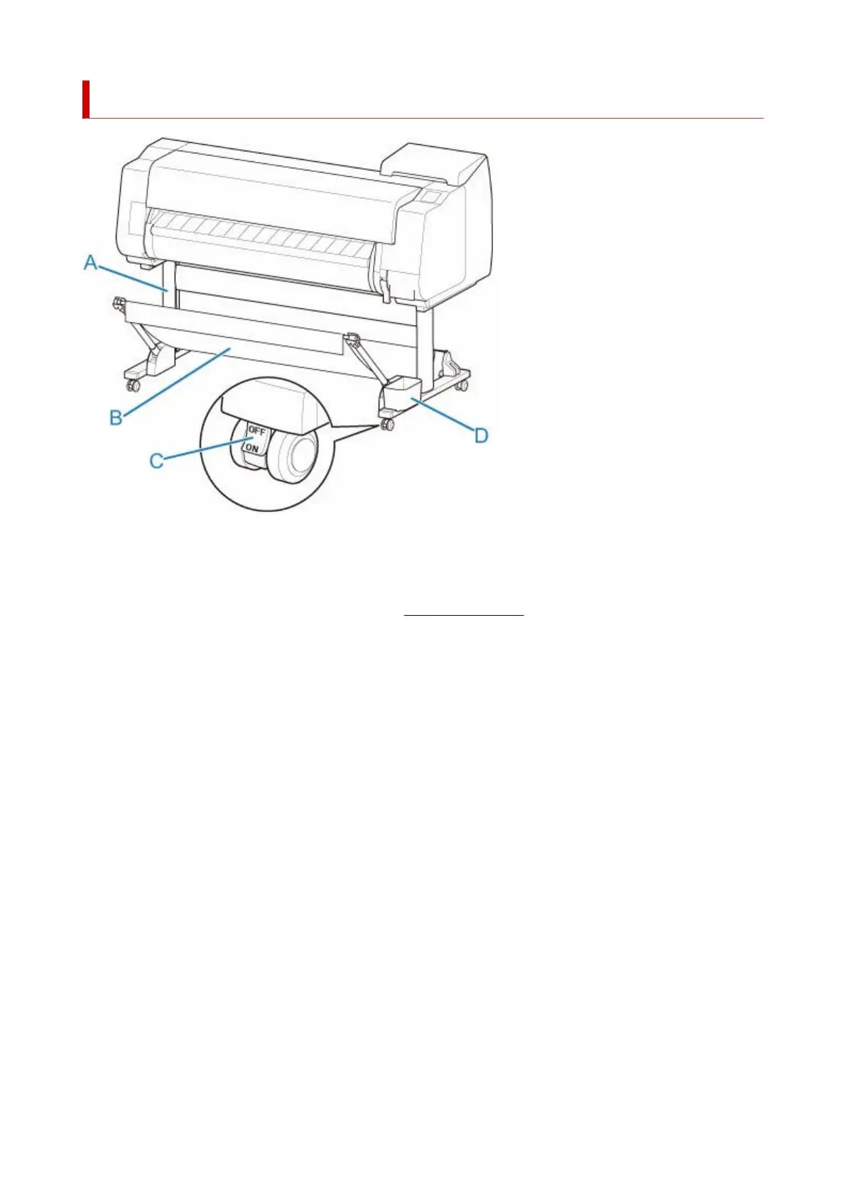 A stand that holds the printer. Equipped with casters to facilitate moving the printer.